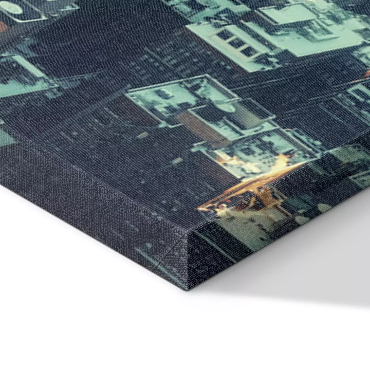 De print wordt aangebracht op hoogwaardig canvas dat op een schildersweefgetouw (spieraam) wordt gespannen. Omdat de print de zijranden bedekt, hoeft het ontwerp niet met een extra kader te worden omlijst. Wij raden ook composities aan die uit meerdere foto's bestaan en zo een coherente compositie vormen.