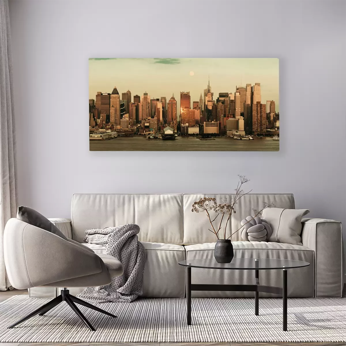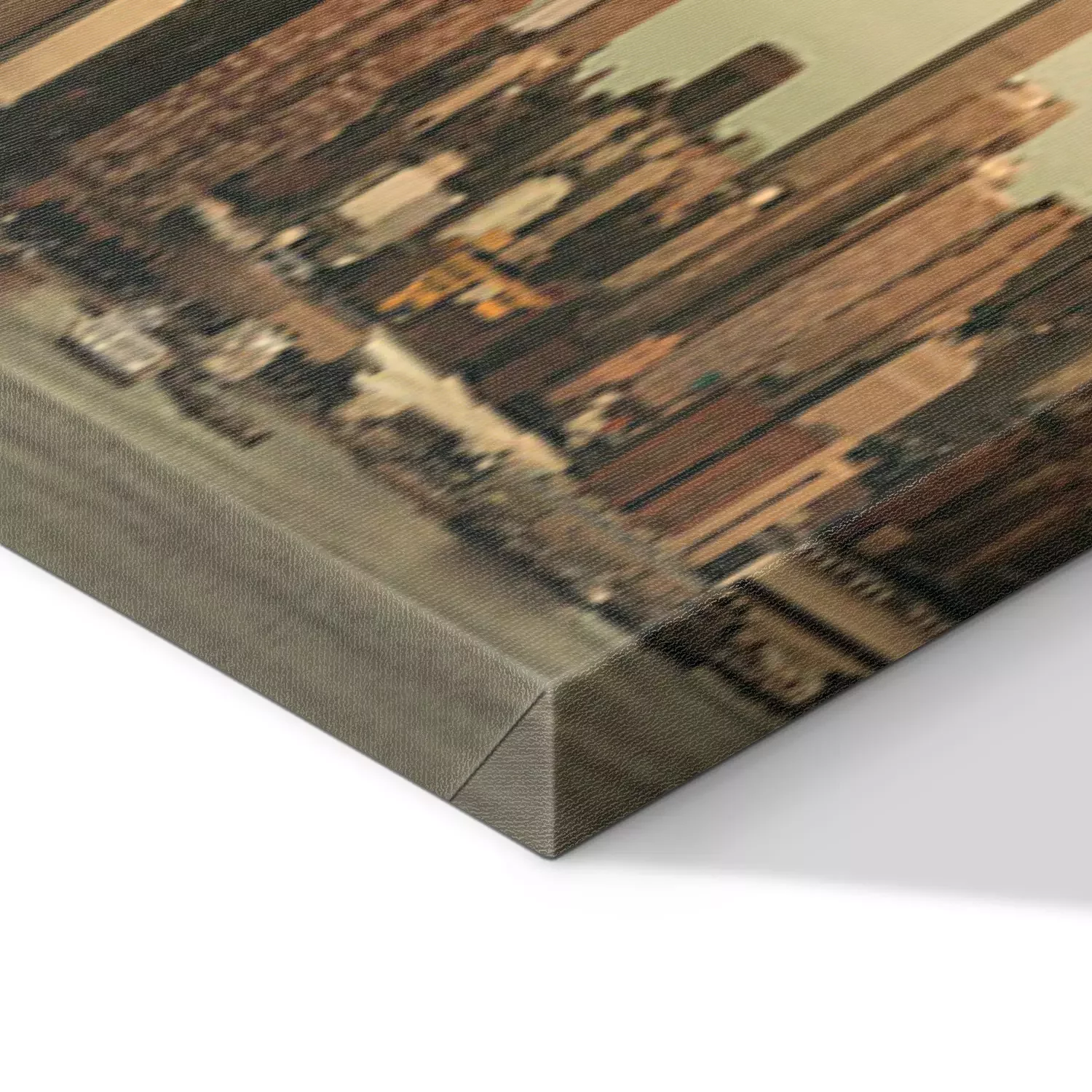De print wordt aangebracht op hoogwaardig canvas dat op een schildersweefgetouw (spieraam) wordt gespannen. Omdat de print de zijranden bedekt, hoeft het ontwerp niet met een extra kader te worden omlijst. Wij raden ook composities aan die uit meerdere foto's bestaan en zo een coherente compositie vormen.