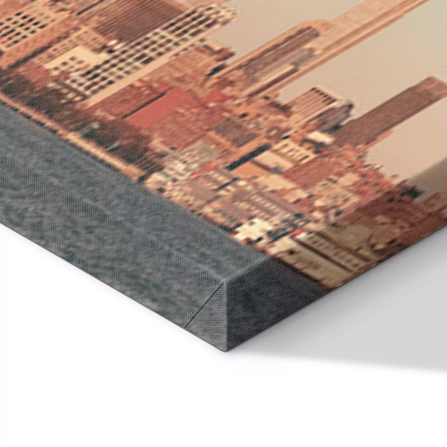 De print wordt aangebracht op hoogwaardig canvas dat op een schildersweefgetouw (spieraam) wordt gespannen. Omdat de print de zijranden bedekt, hoeft het ontwerp niet met een extra kader te worden omlijst. Wij raden ook composities aan die uit meerdere foto's bestaan en zo een coherente compositie vormen.
