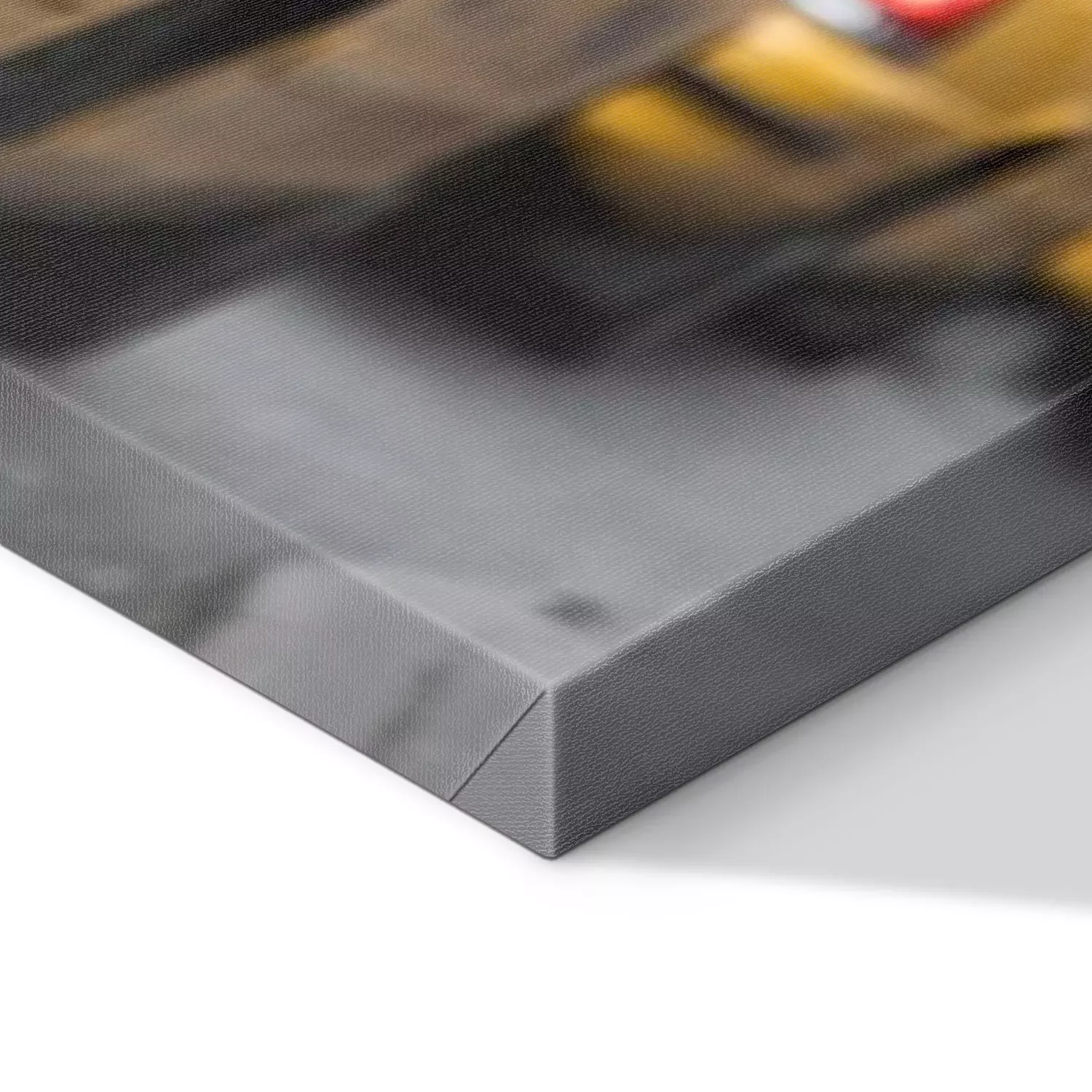 De print wordt aangebracht op hoogwaardig canvas dat op een schildersweefgetouw (spieraam) wordt gespannen. Omdat de print de zijranden bedekt, hoeft het ontwerp niet met een extra kader te worden omlijst. Wij raden ook composities aan die uit meerdere foto's bestaan en zo een coherente compositie vormen.