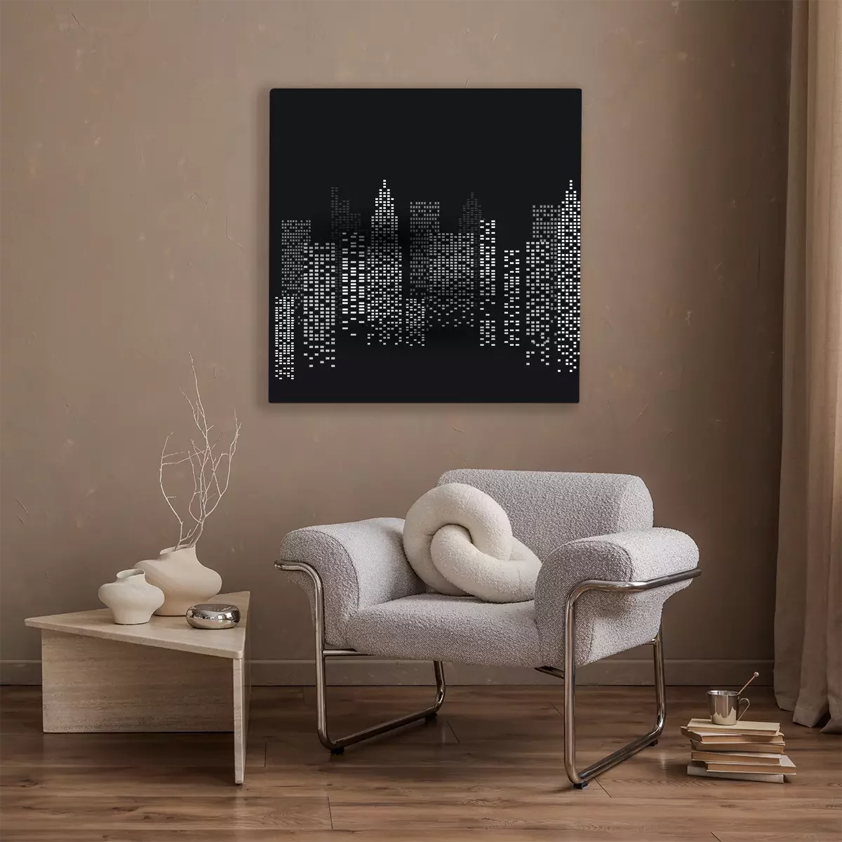 De print wordt aangebracht op hoogwaardig canvas dat op een schildersweefgetouw (spieraam) wordt gespannen. Omdat de print de zijranden bedekt, hoeft het ontwerp niet met een extra kader te worden omlijst. Wij raden ook composities aan die uit meerdere foto's bestaan en zo een coherente compositie vormen.