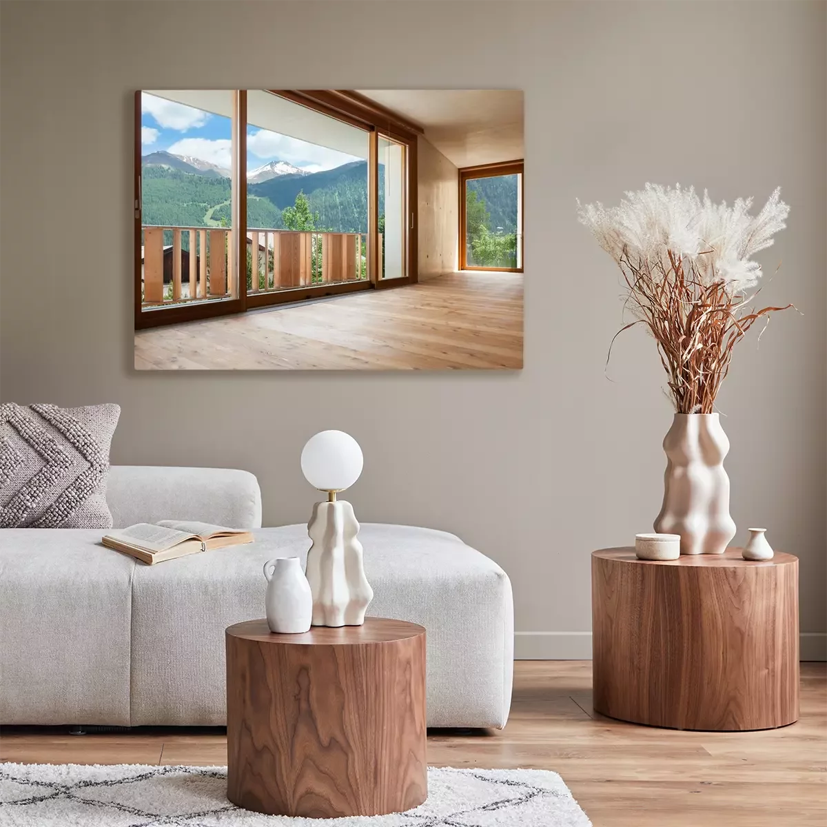 Canvas: nieuw appartement, kamer met betonnen muren, groot raam