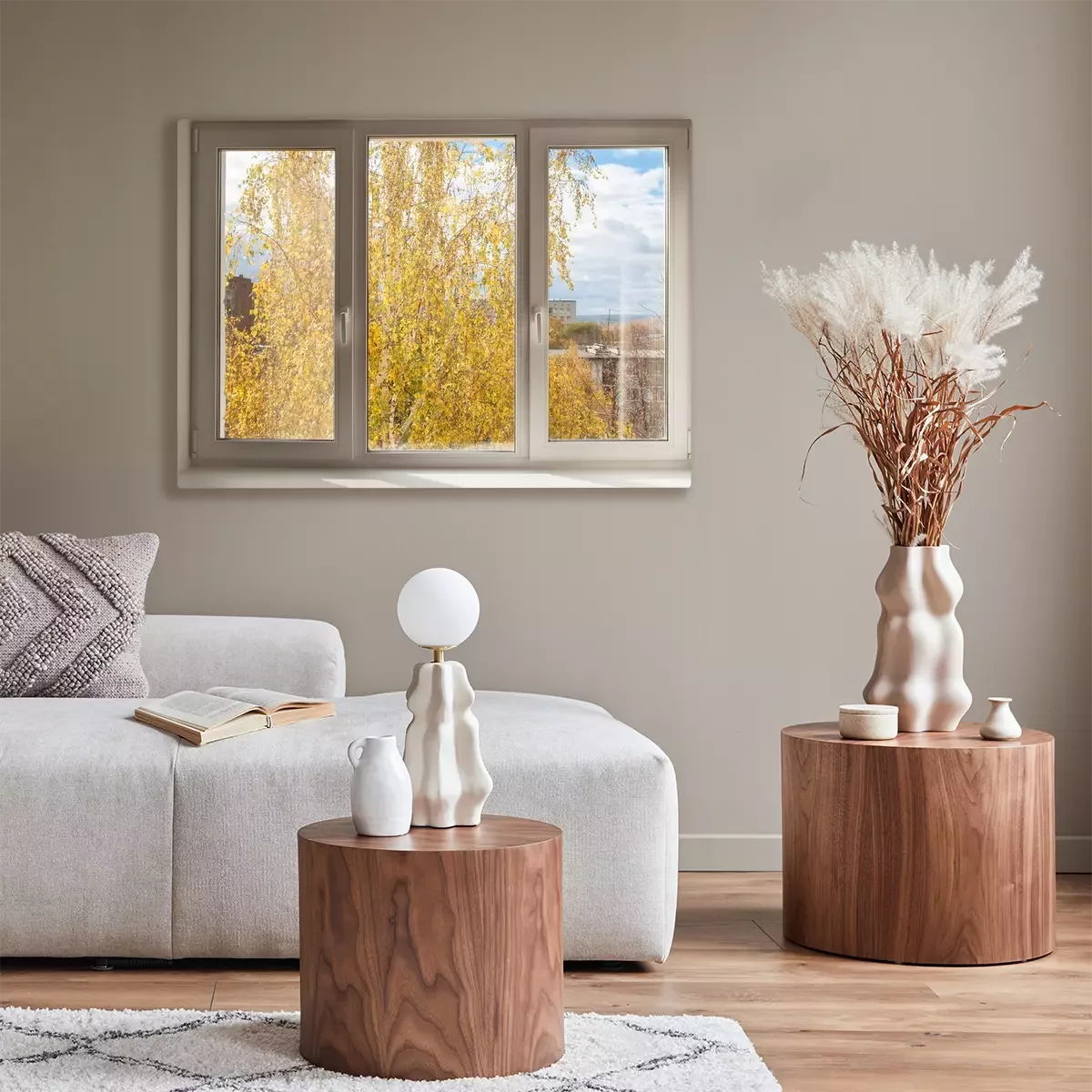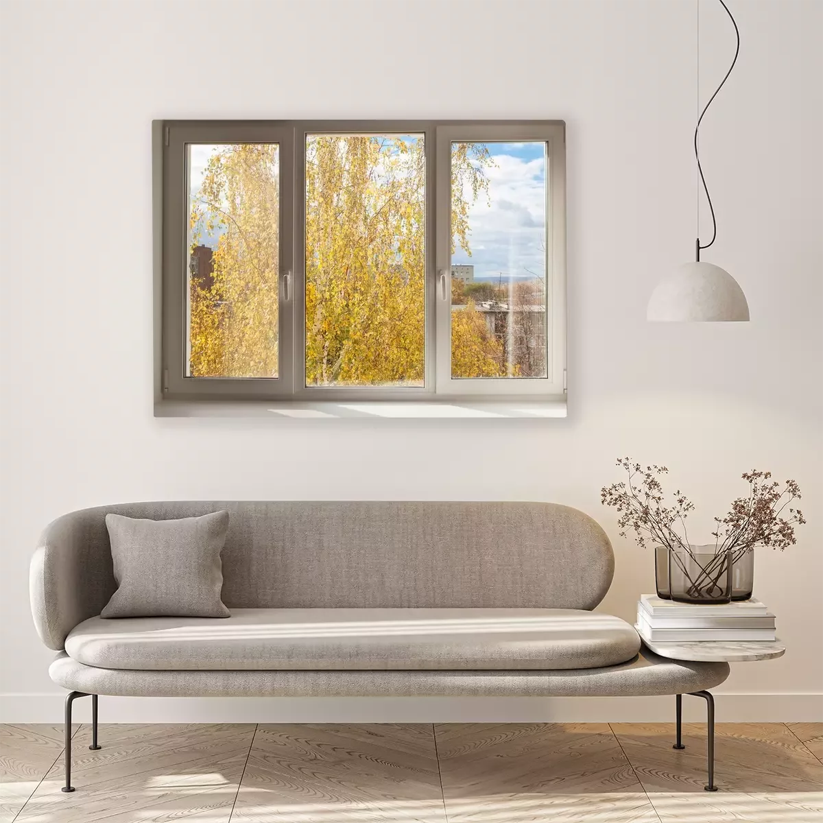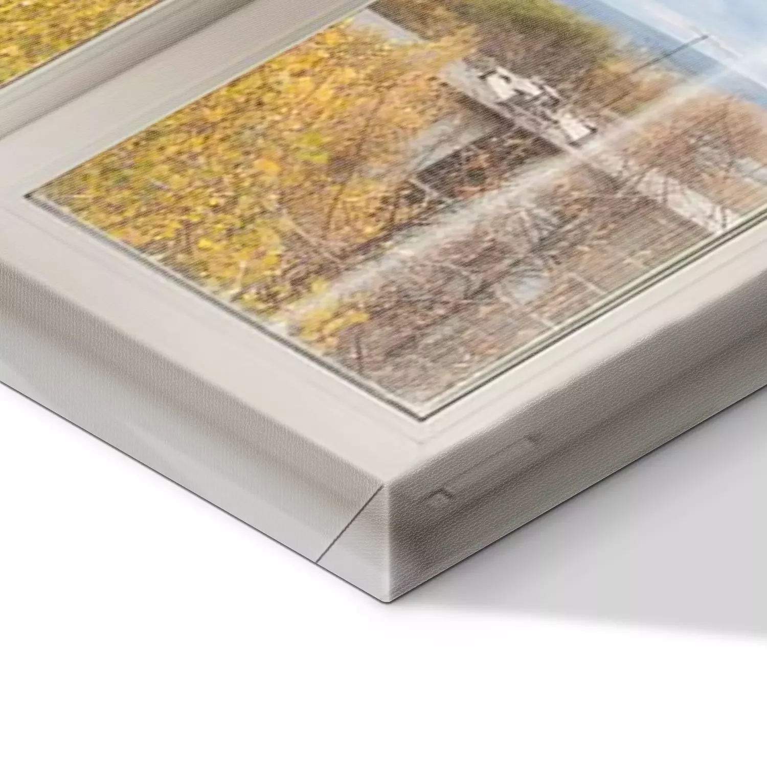 Canvas: Nieuwe witte venster overziet herfst geel bomen