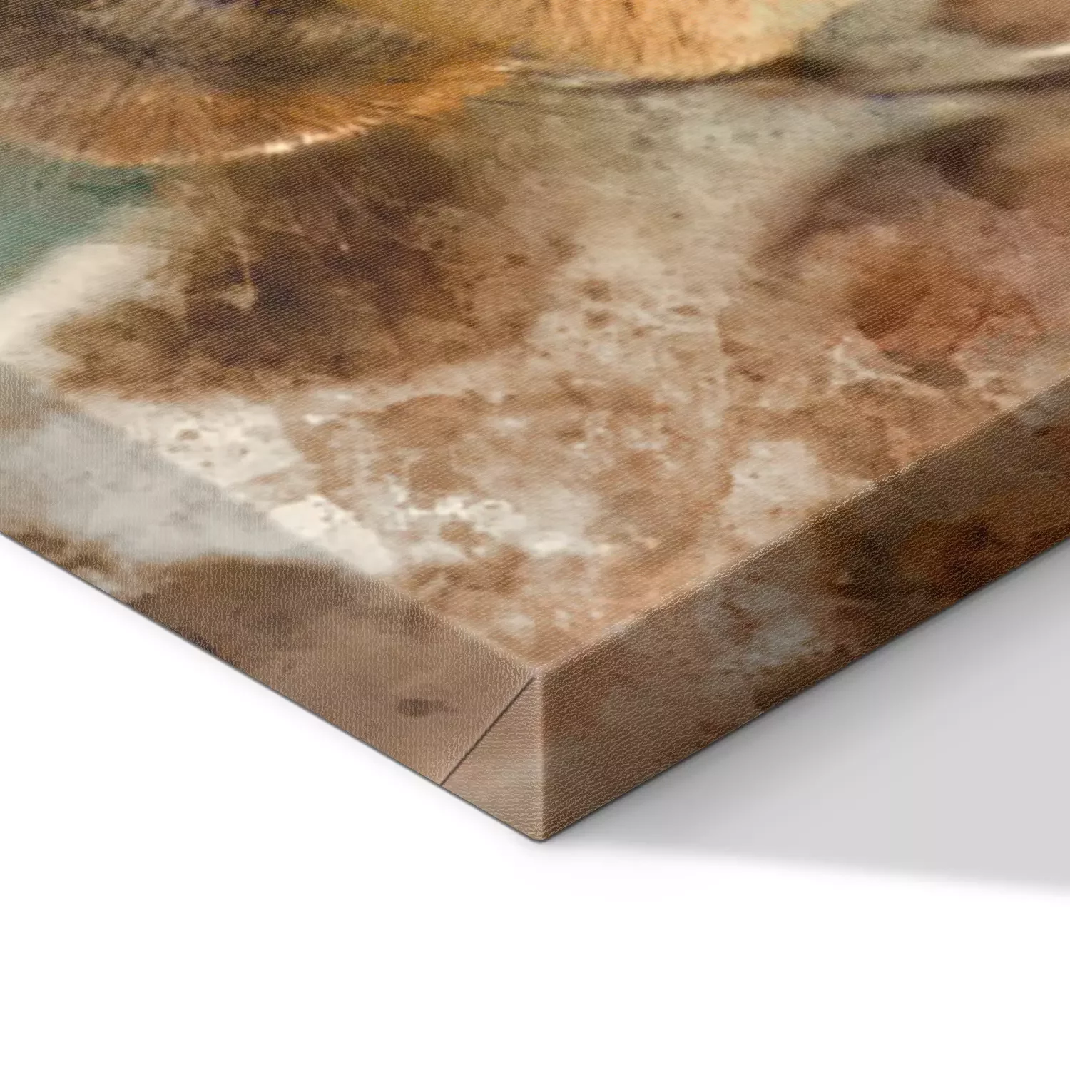 De print wordt aangebracht op hoogwaardig canvas dat op een schildersweefgetouw (spieraam) wordt gespannen. Omdat de print de zijranden bedekt, hoeft het ontwerp niet met een extra kader te worden omlijst. Wij raden ook composities aan die uit meerdere foto's bestaan en zo een coherente compositie vormen.