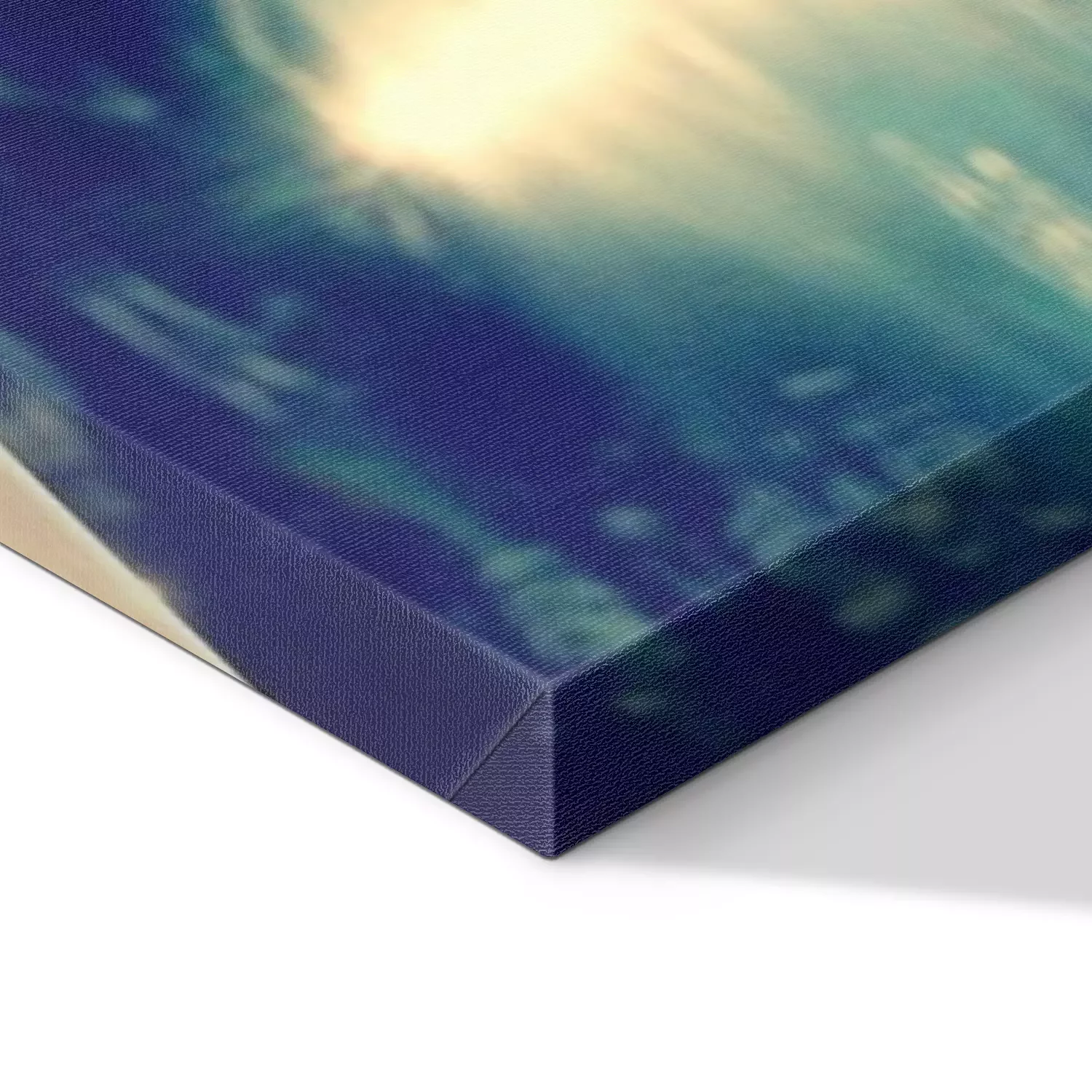 De print wordt aangebracht op hoogwaardig canvas dat op een schildersweefgetouw (spieraam) wordt gespannen. Omdat de print de zijranden bedekt, hoeft het ontwerp niet met een extra kader te worden omlijst. Wij raden ook composities aan die uit meerdere foto's bestaan en zo een coherente compositie vormen.