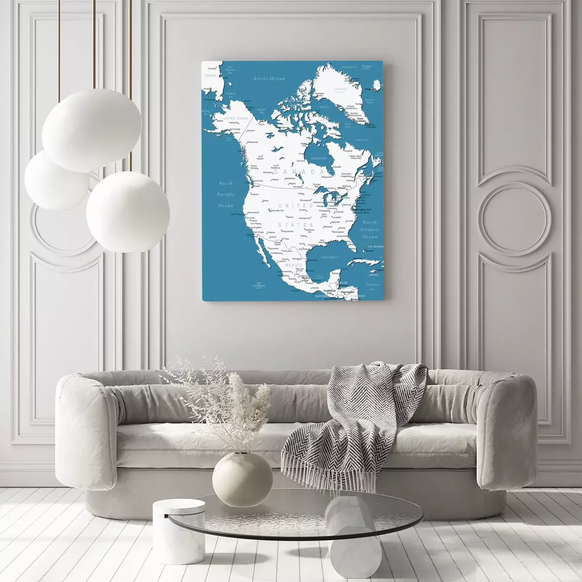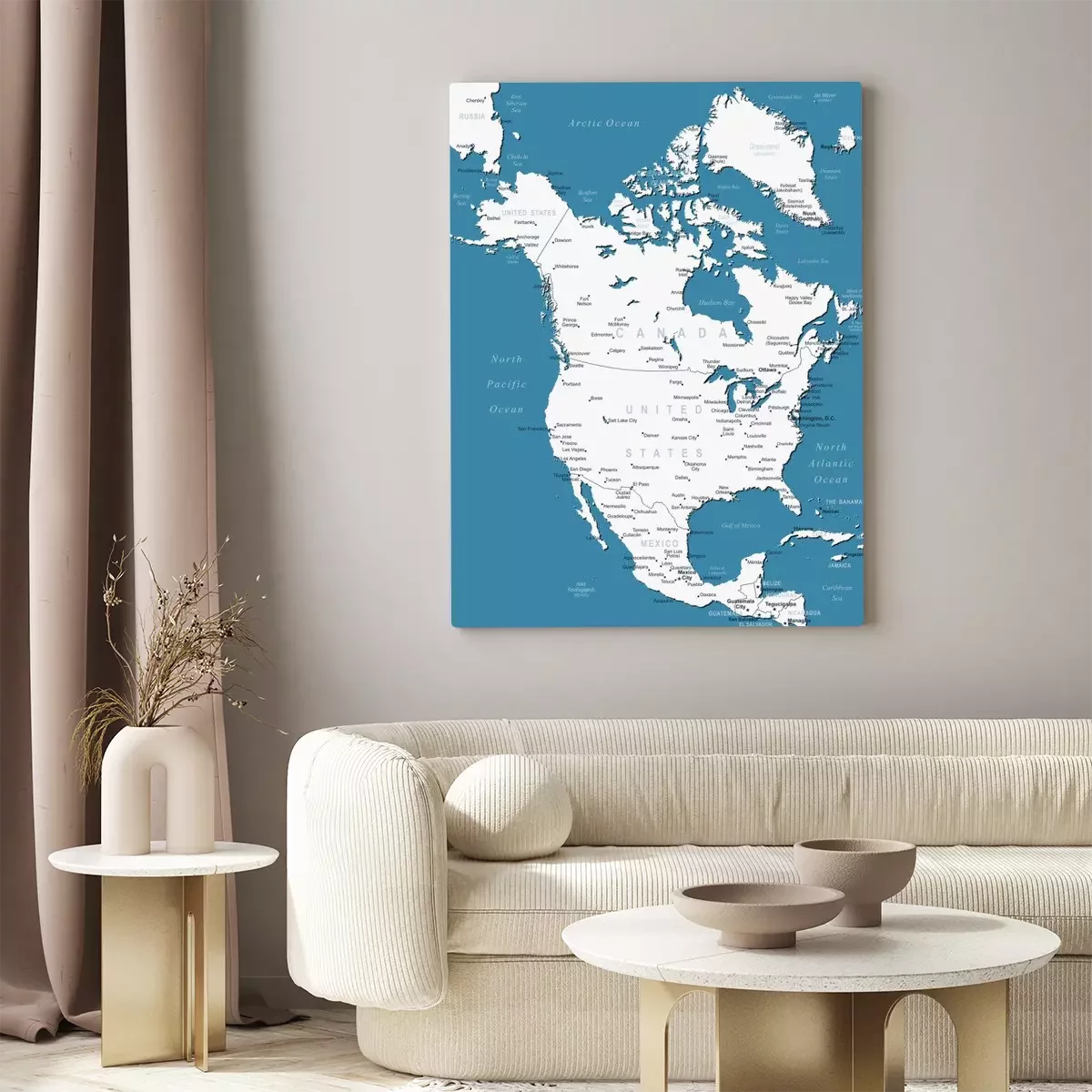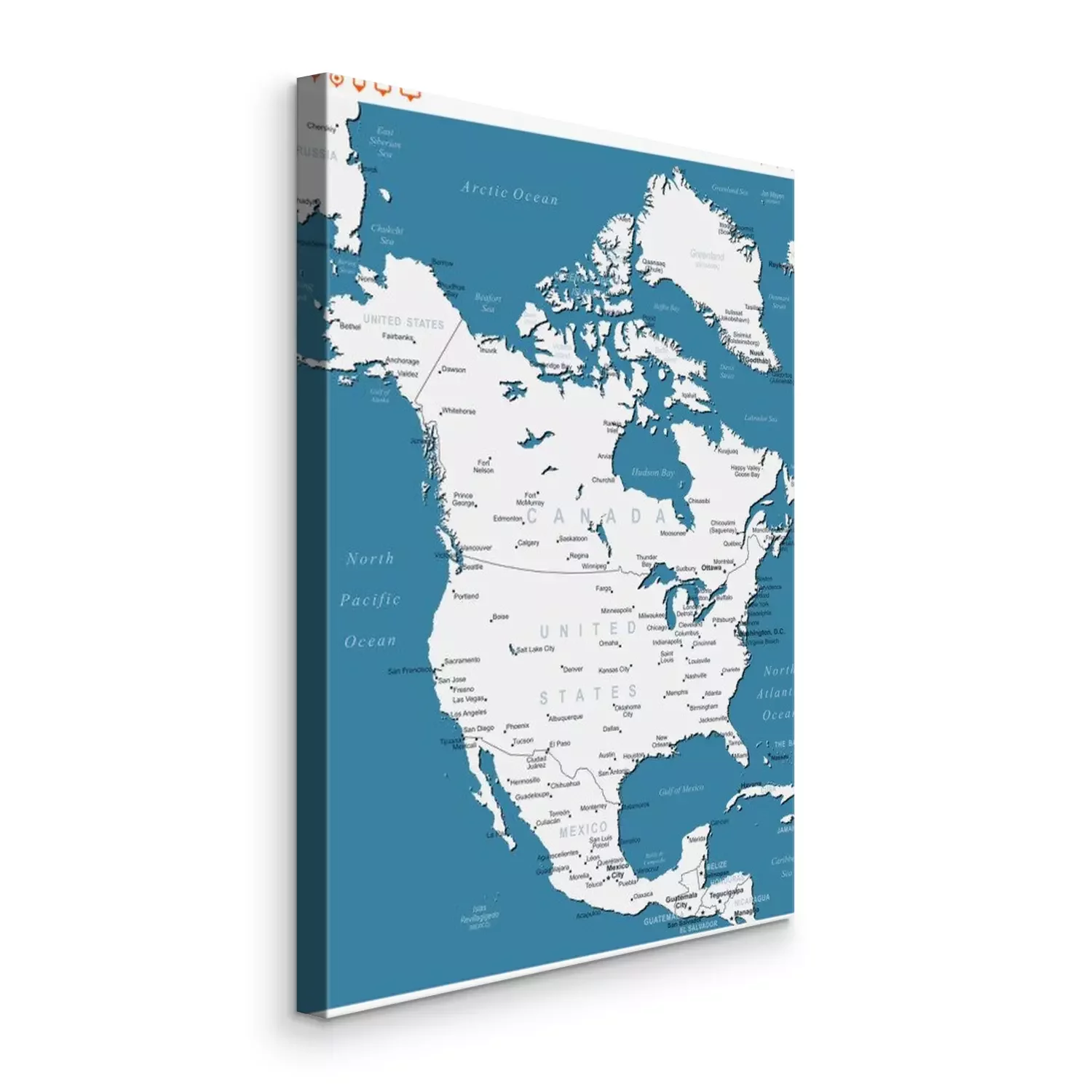 Canvas Noord-Amerika kaart - zeer gedetailleerde vector illustratie. Afbeelding bevat land contouren, land en land namen, stad, namen water object, navigatie iconen.