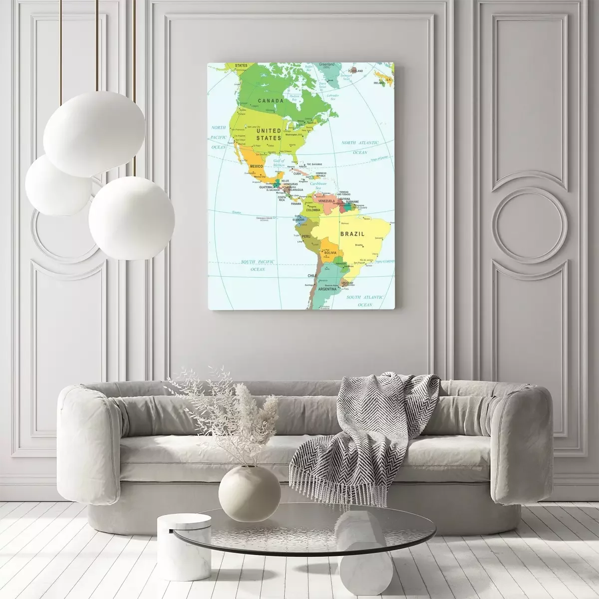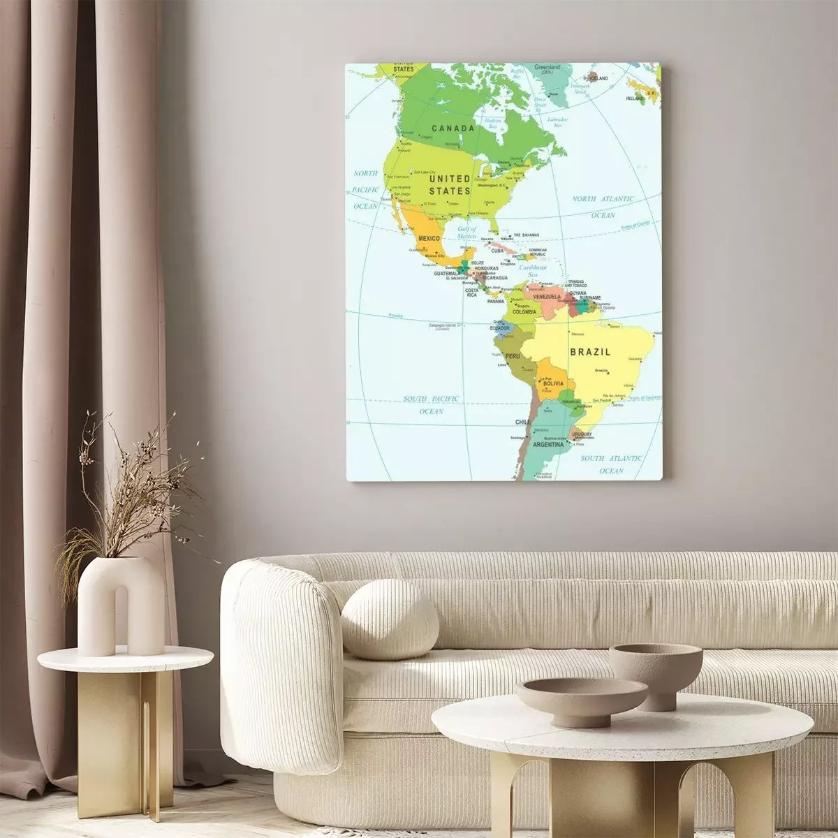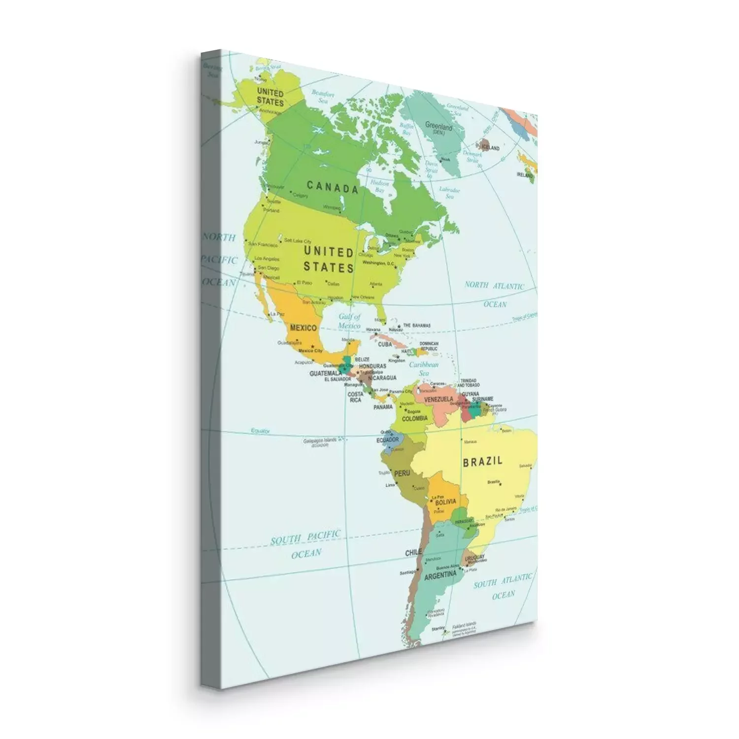 Canvas Noord- en Zuid-Amerika kaart - zeer gedetailleerde vector illustratie.