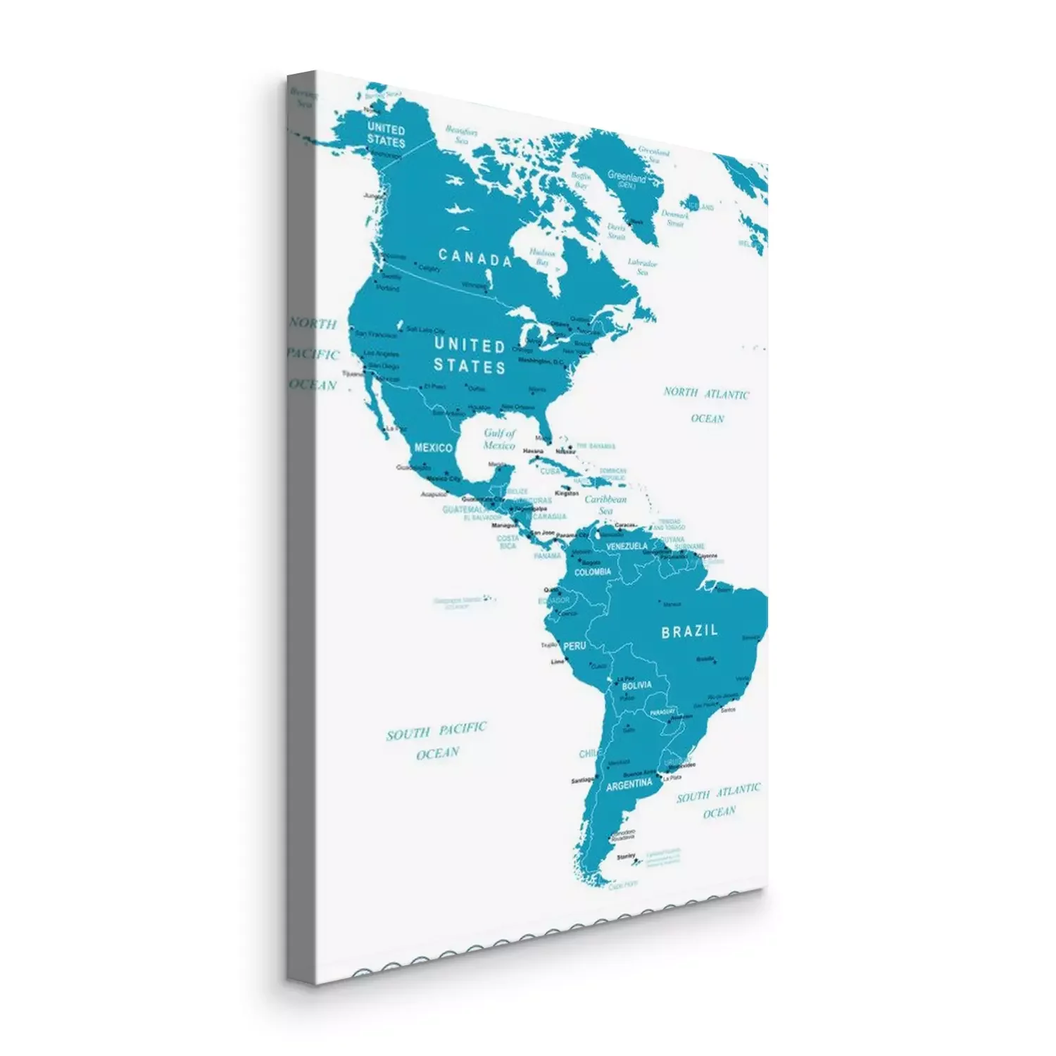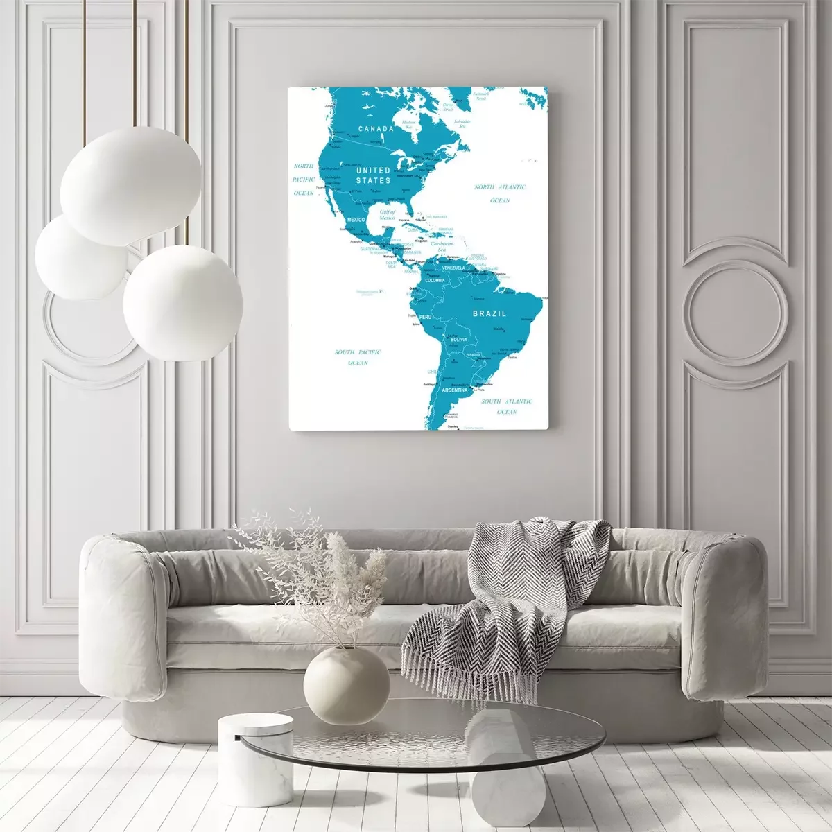 Canvas Noord- en Zuid-Amerika kaart - zeer gedetailleerde vector illustratie. Afbeelding bevat land contouren, land en land namen, stad, namen water object, navigatie iconen.
