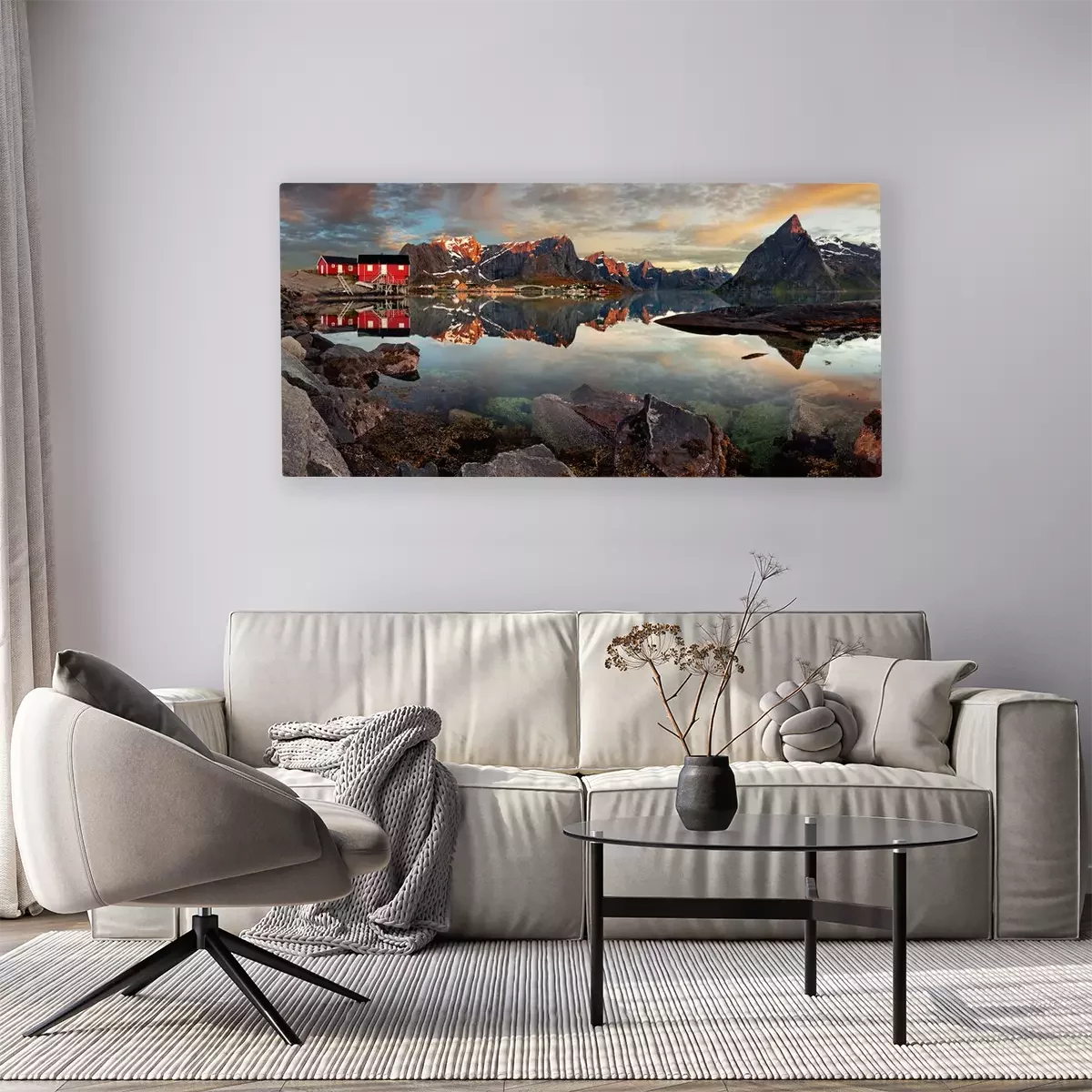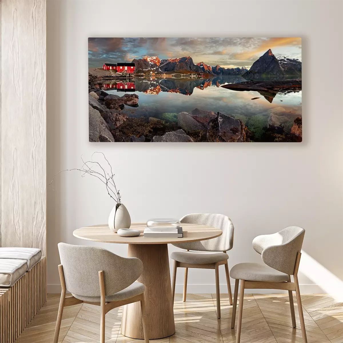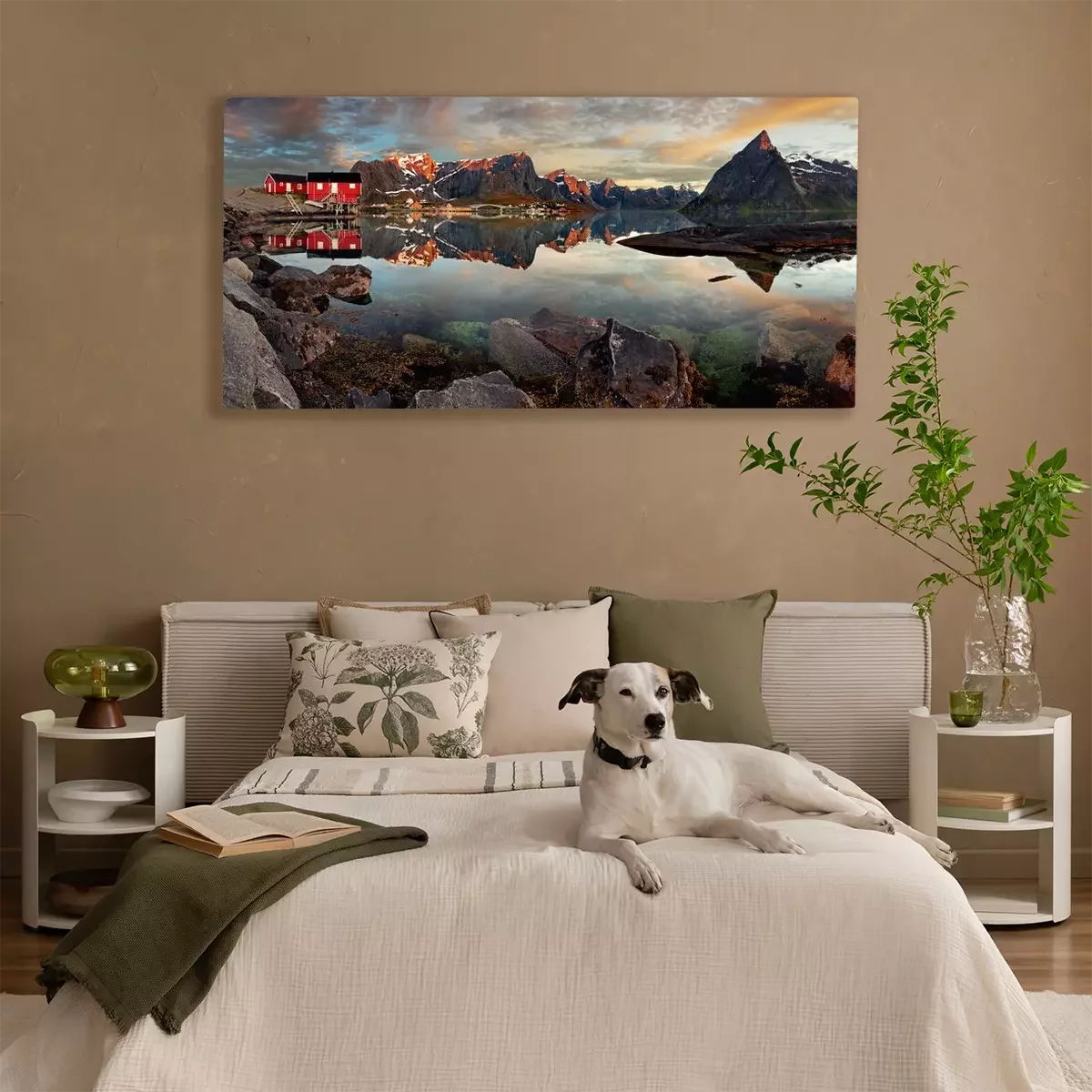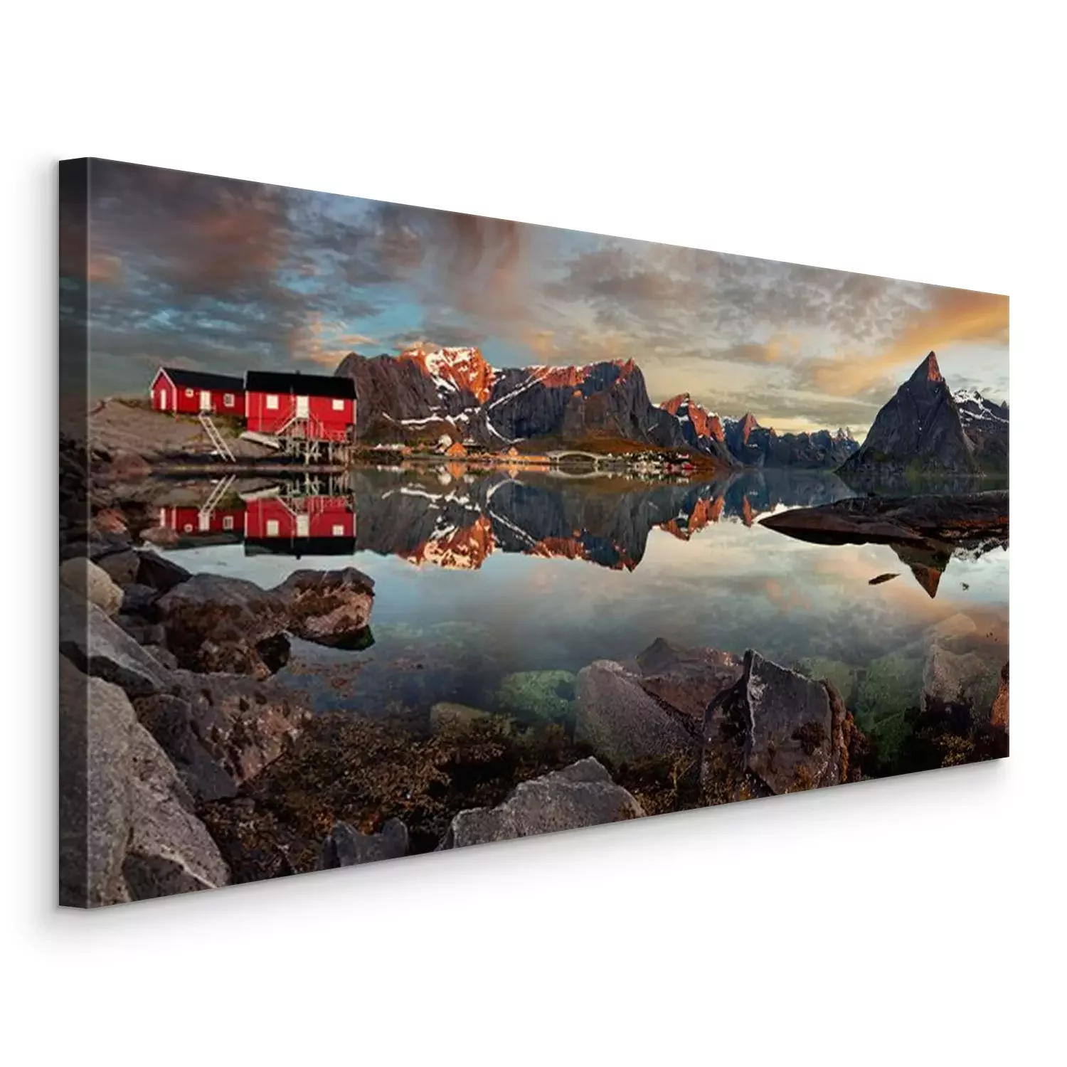Canvas: Noorwegen dorp Reine met bergen, panorama