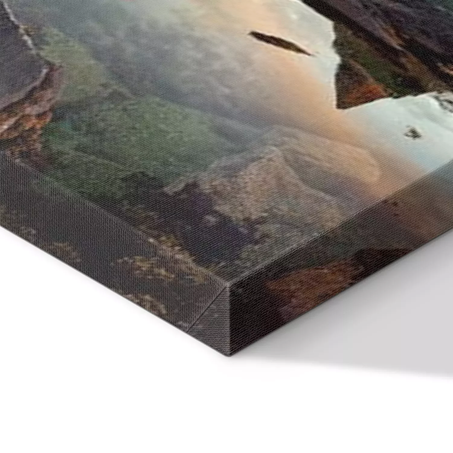 De print wordt aangebracht op hoogwaardig canvas dat op een schildersweefgetouw (spieraam) wordt gespannen. Omdat de print de zijranden bedekt, hoeft het ontwerp niet met een extra kader te worden omlijst. Wij raden ook composities aan die uit meerdere foto's bestaan en zo een coherente compositie vormen.