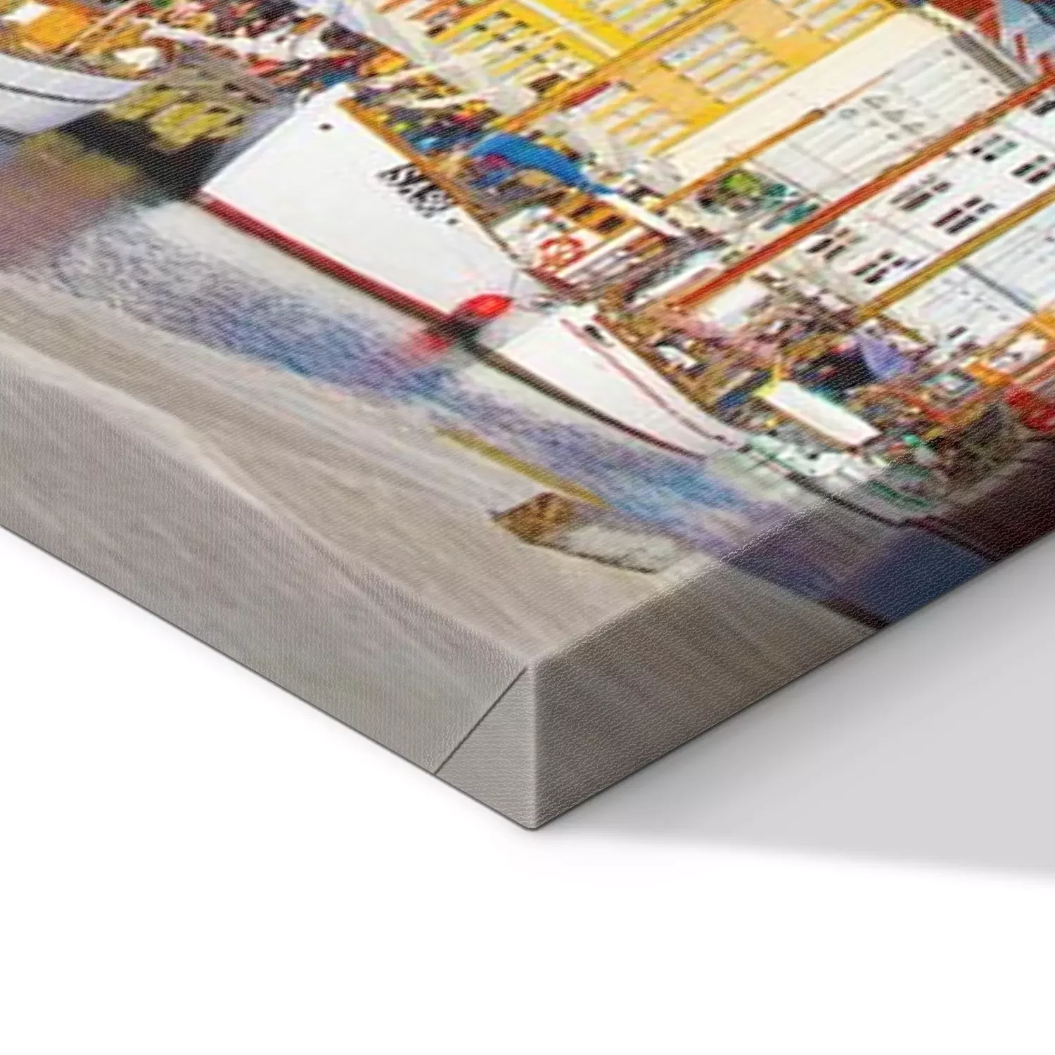 De print wordt aangebracht op hoogwaardig canvas dat op een schildersweefgetouw (spieraam) wordt gespannen. Omdat de print de zijranden bedekt, hoeft het ontwerp niet met een extra kader te worden omlijst. Wij raden ook composities aan die uit meerdere foto's bestaan en zo een coherente compositie vormen.