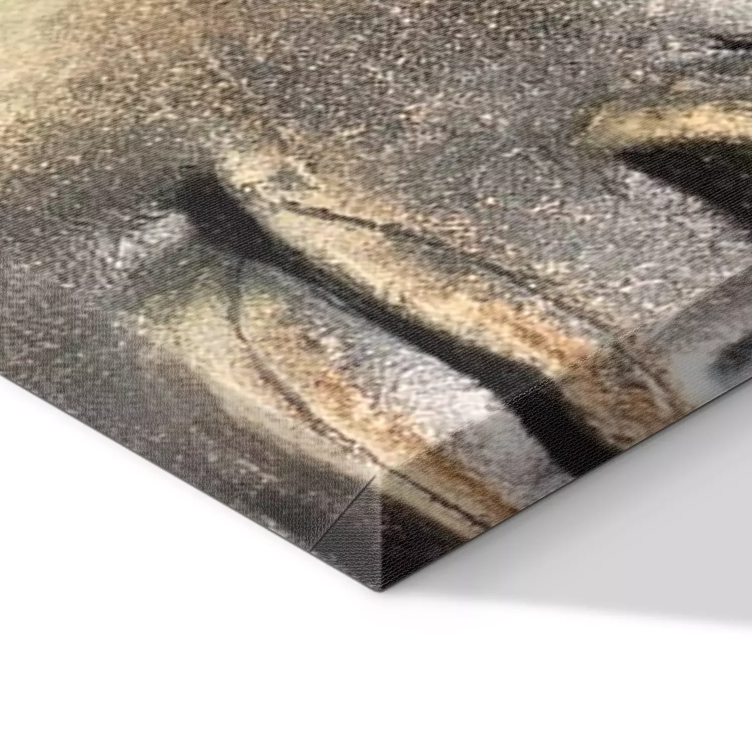 De print wordt aangebracht op hoogwaardig canvas dat op een schildersweefgetouw (spieraam) wordt gespannen. Omdat de print de zijranden bedekt, hoeft het ontwerp niet met een extra kader te worden omlijst. Wij raden ook composities aan die uit meerdere foto's bestaan en zo een coherente compositie vormen.