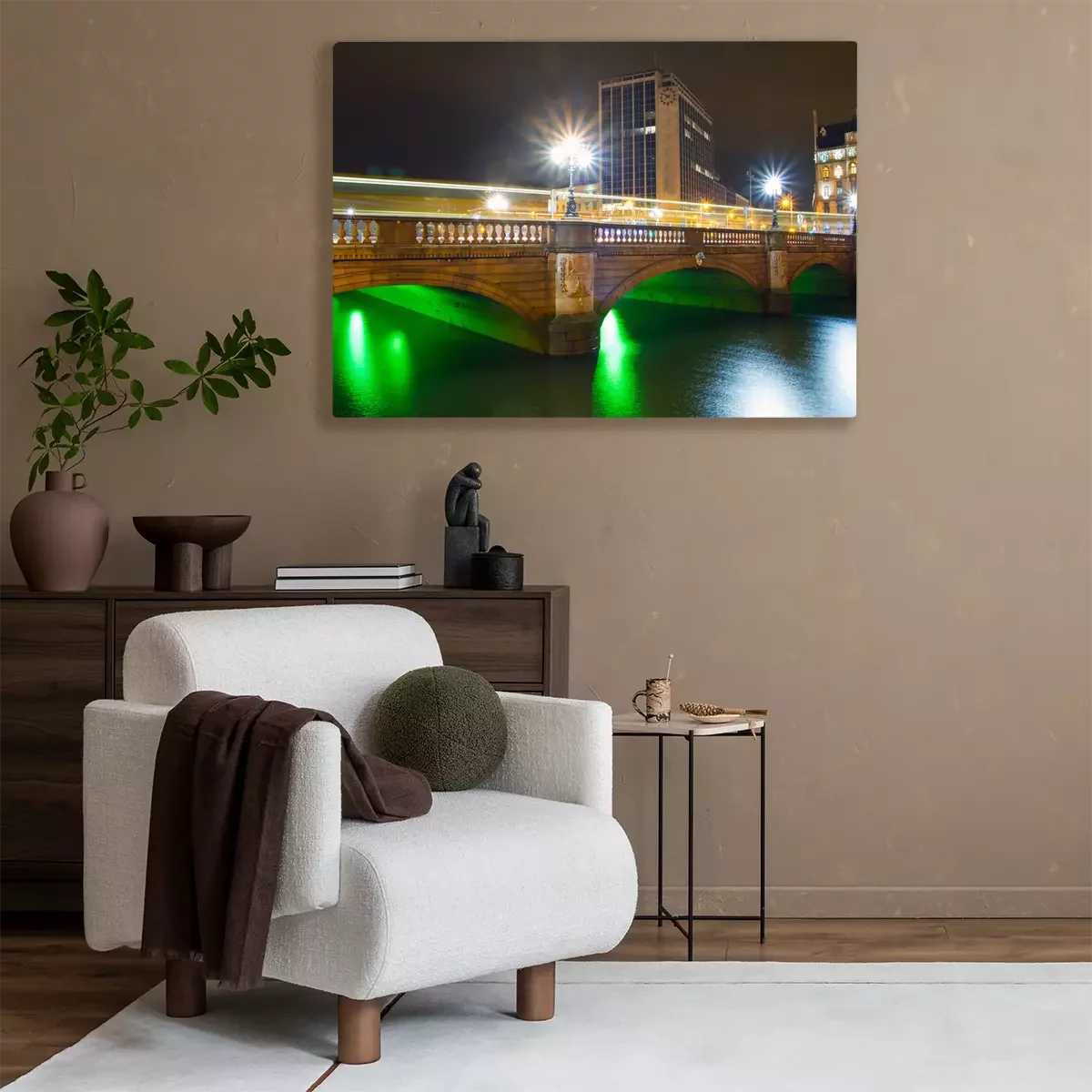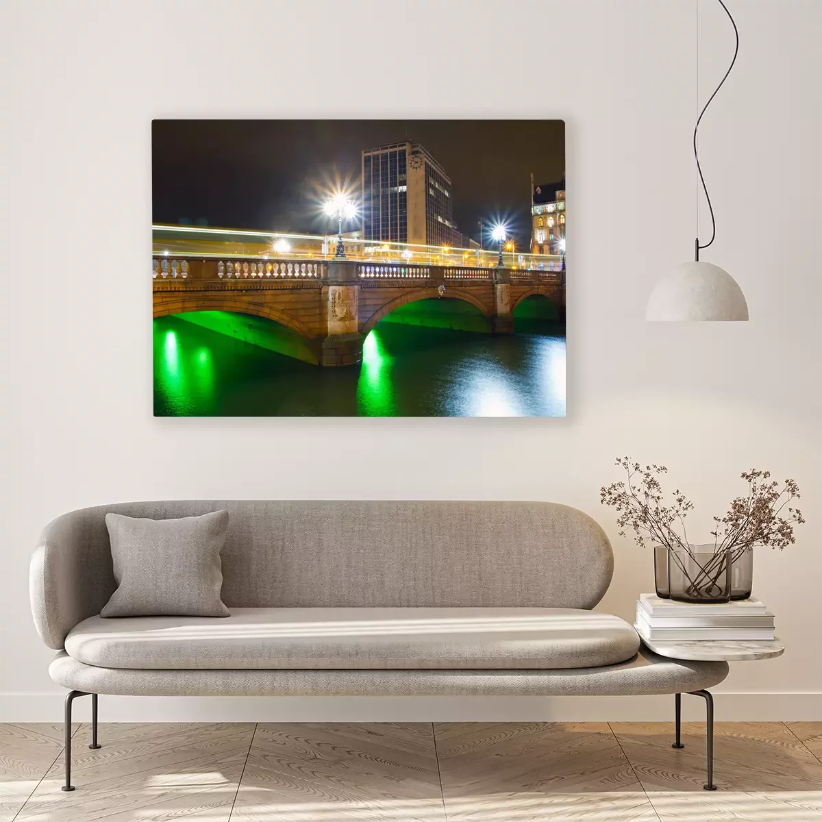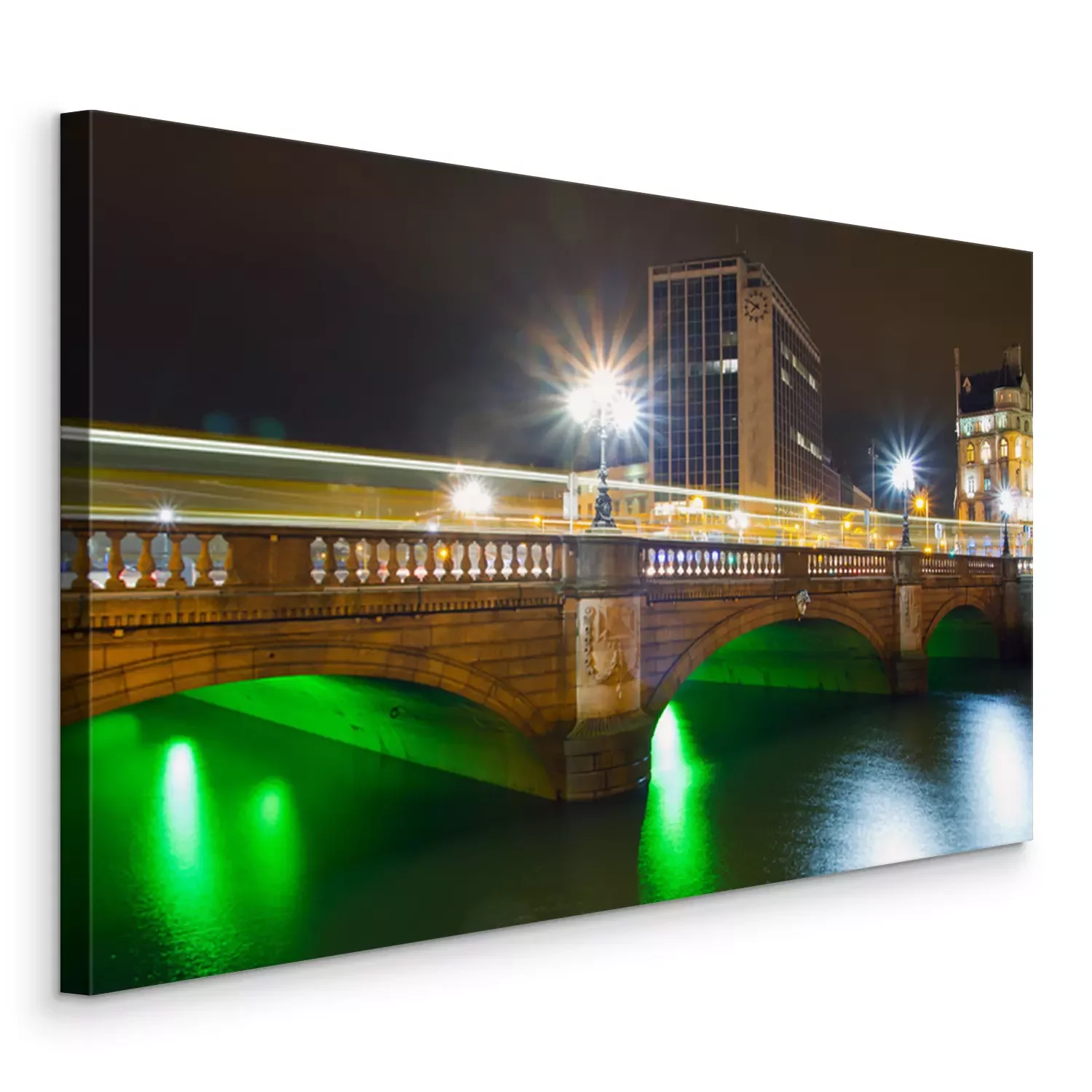 Canvas: O'Connell Street Bridge in Dublin in de nacht, Ierland