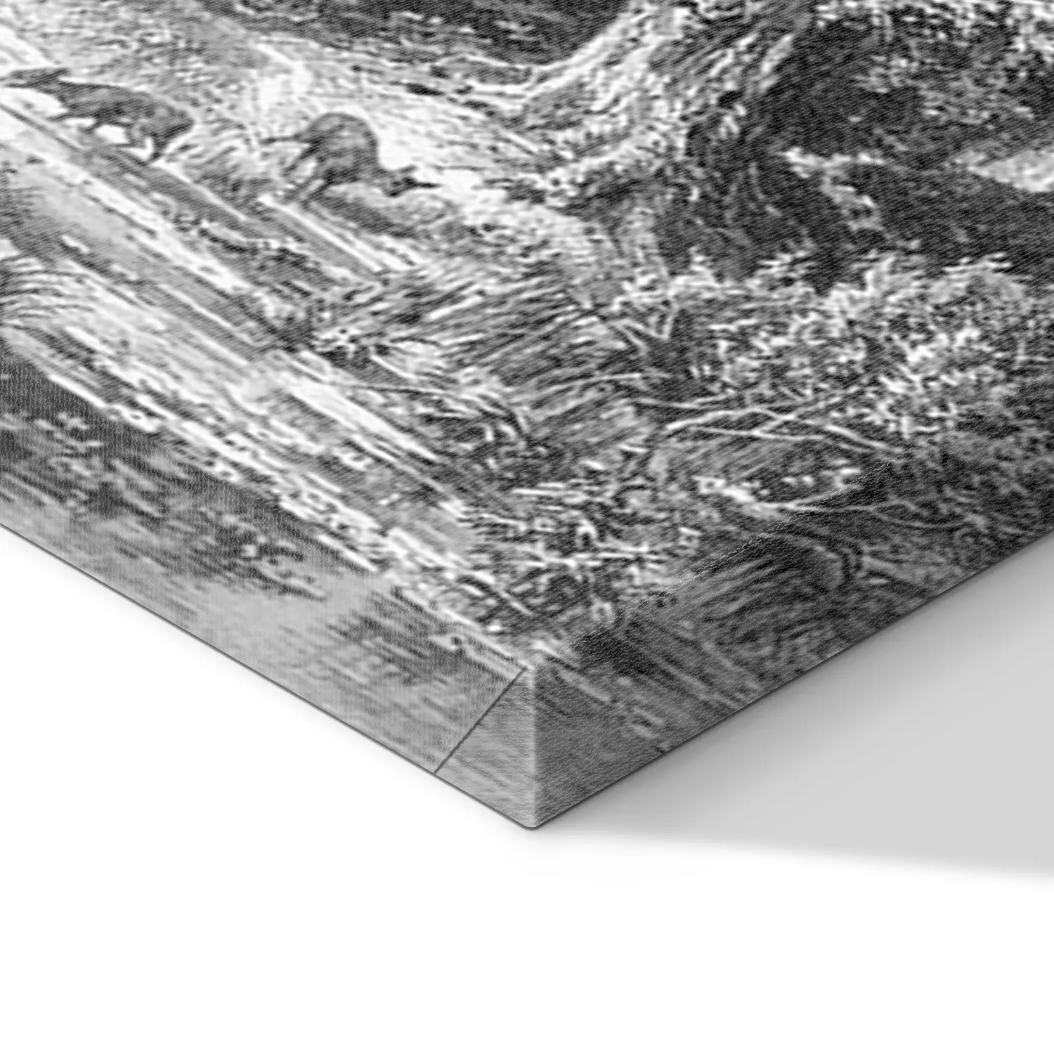 De print wordt aangebracht op hoogwaardig canvas dat op een schildersweefgetouw (spieraam) wordt gespannen. Omdat de print de zijranden bedekt, hoeft het ontwerp niet met een extra kader te worden omlijst. Wij raden ook composities aan die uit meerdere foto's bestaan en zo een coherente compositie vormen.