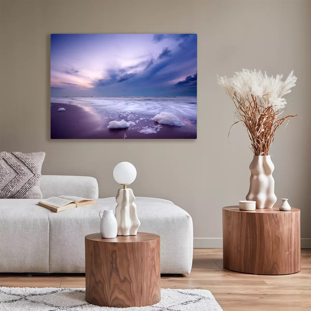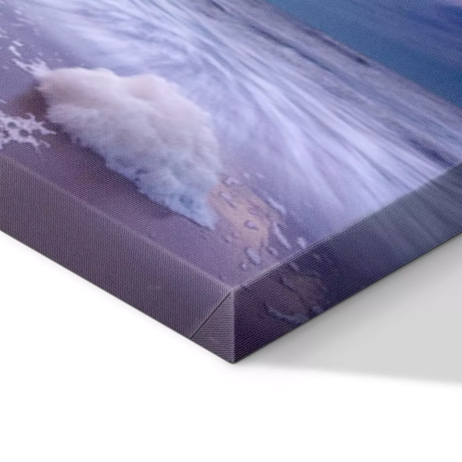 De print wordt aangebracht op hoogwaardig canvas dat op een schildersweefgetouw (spieraam) wordt gespannen. Omdat de print de zijranden bedekt, hoeft het ontwerp niet met een extra kader te worden omlijst. Wij raden ook composities aan die uit meerdere foto's bestaan en zo een coherente compositie vormen.