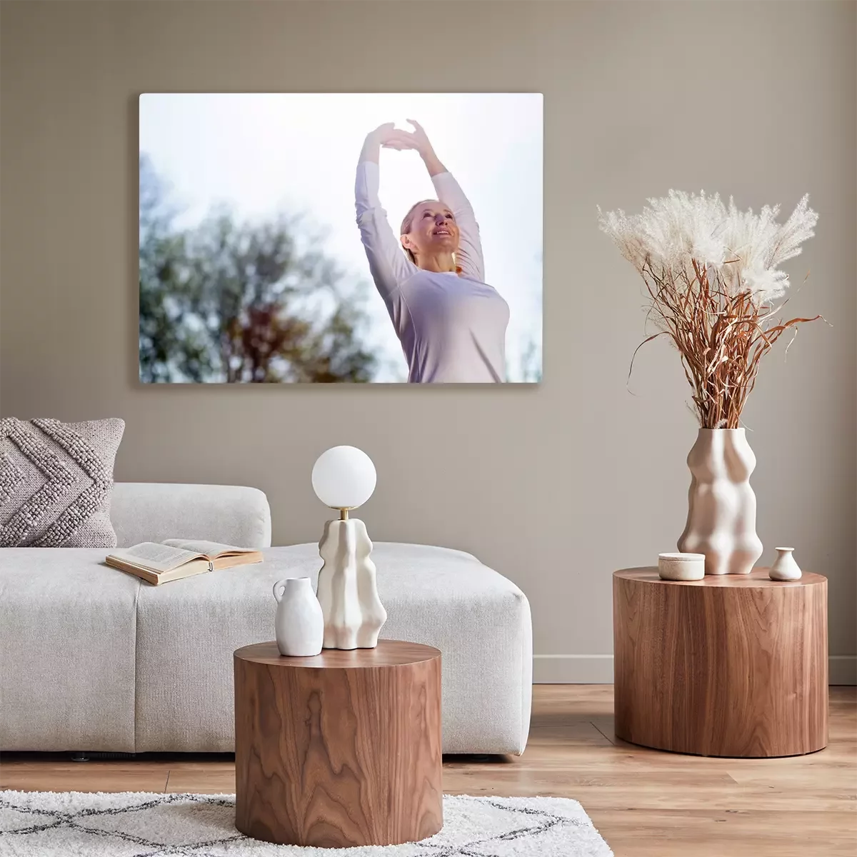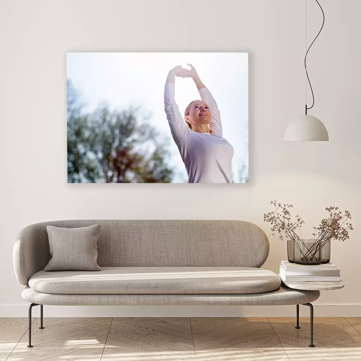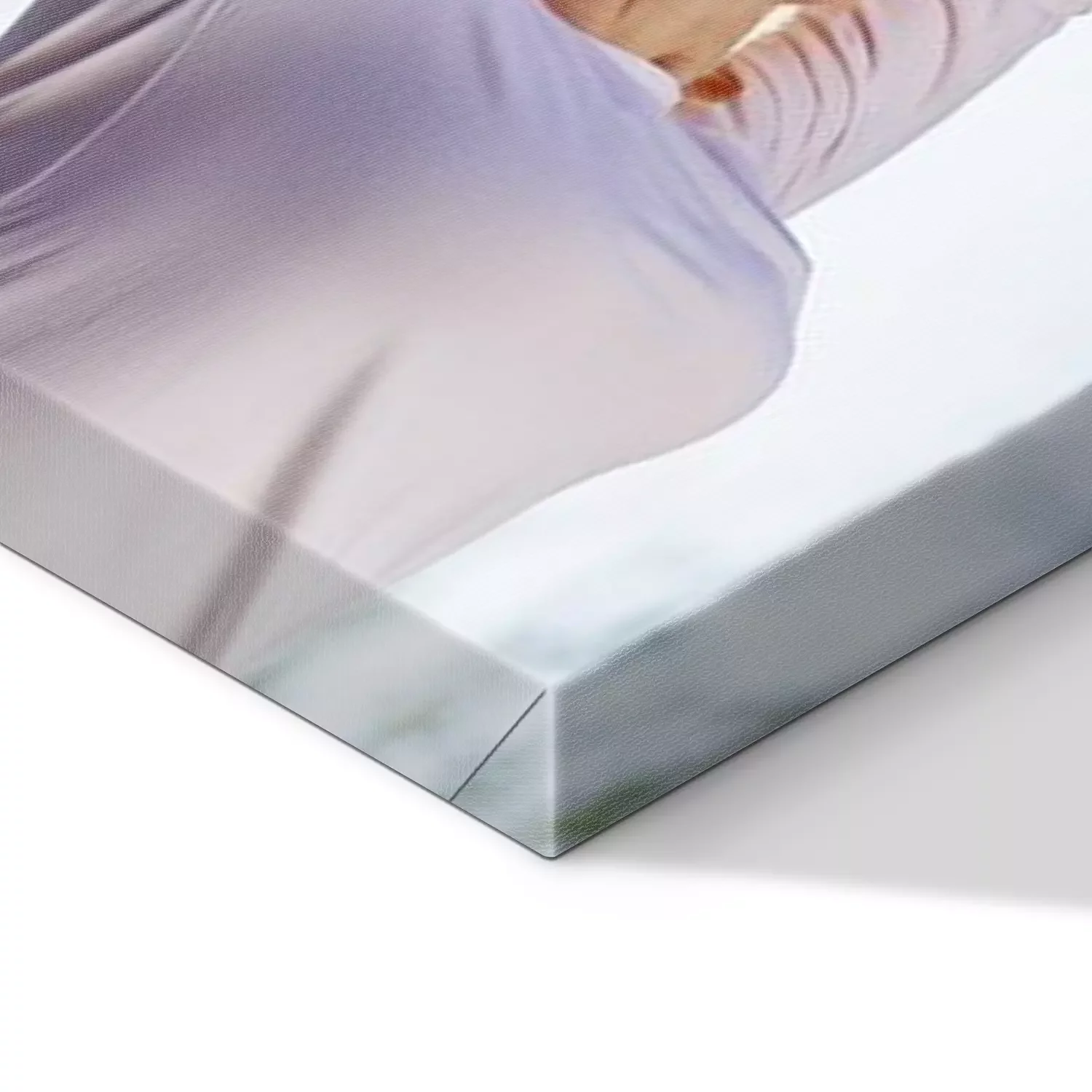 De print wordt aangebracht op hoogwaardig canvas dat op een schildersweefgetouw (spieraam) wordt gespannen. Omdat de print de zijranden bedekt, hoeft het ontwerp niet met een extra kader te worden omlijst. Wij raden ook composities aan die uit meerdere foto's bestaan en zo een coherente compositie vormen.