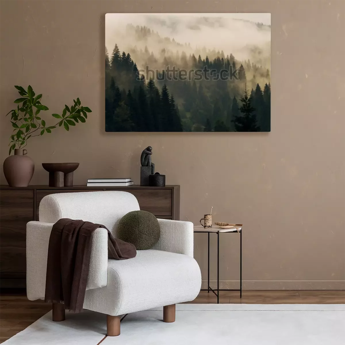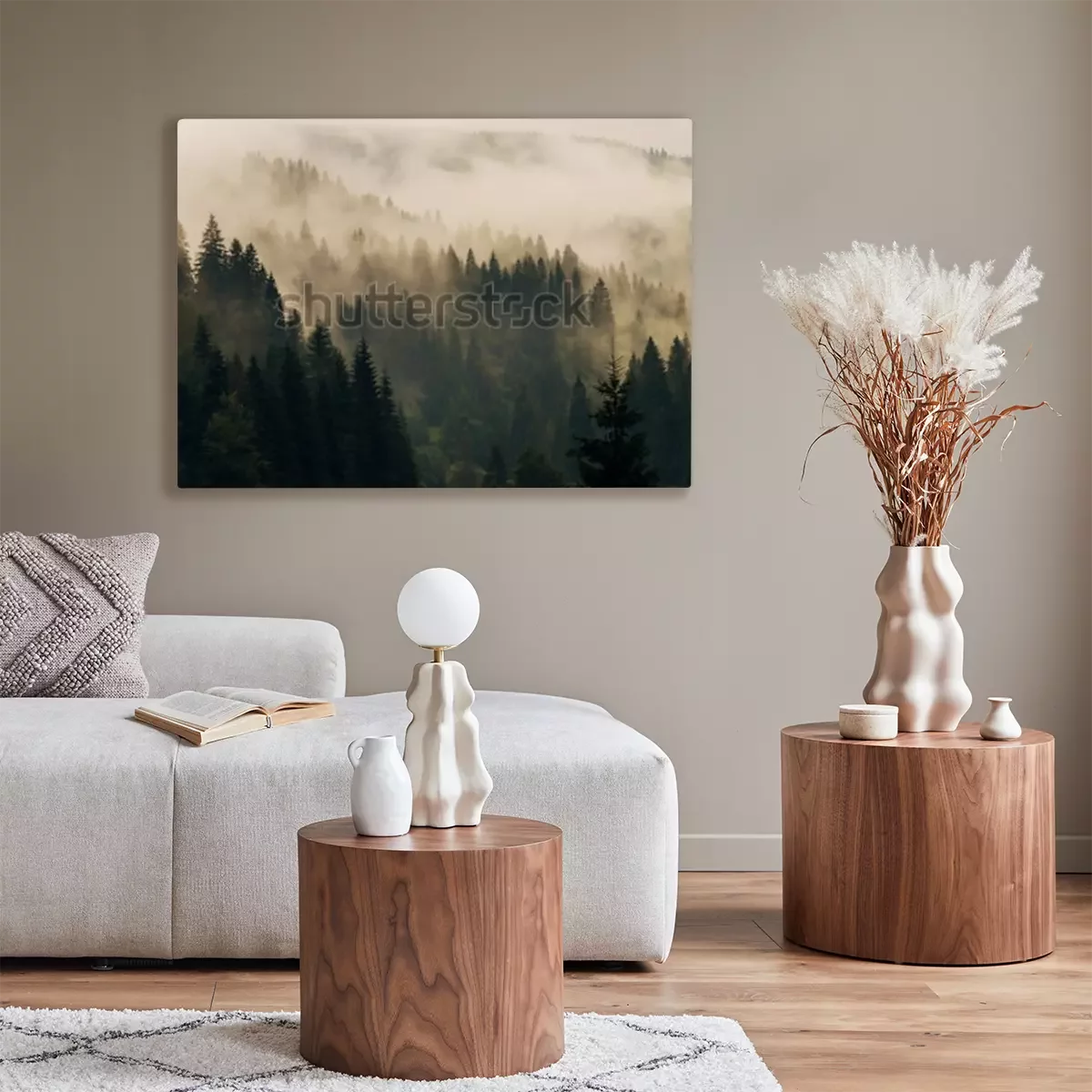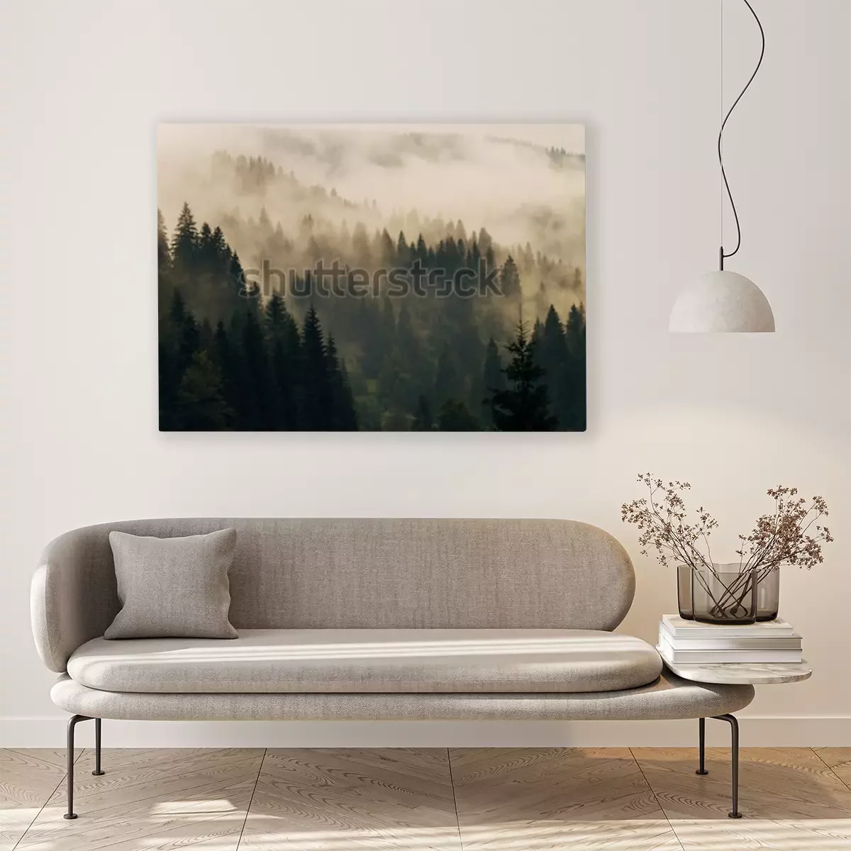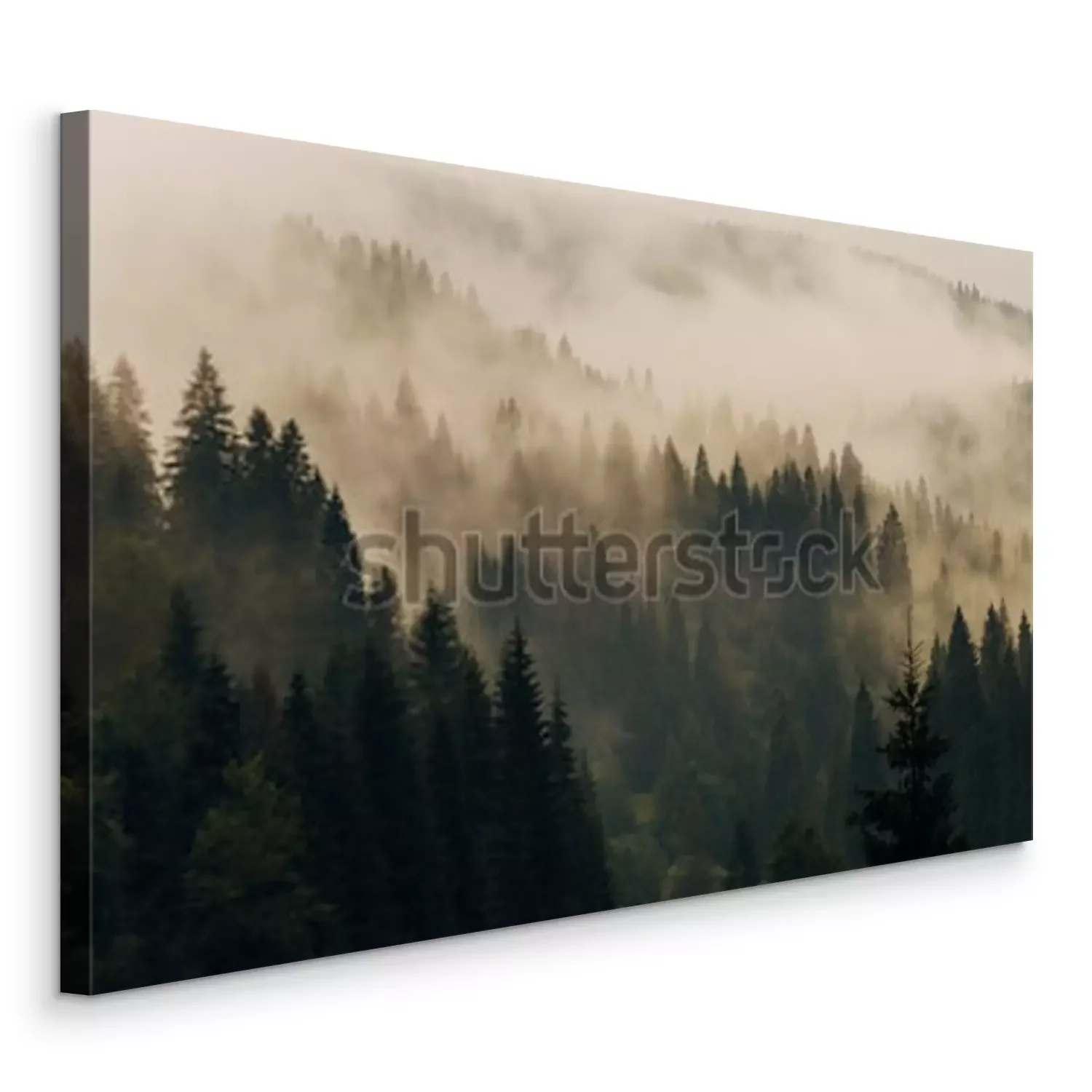 Canvas: Ochtendmist op de berghellingen. Karpaten. Oekraïne, Europa.