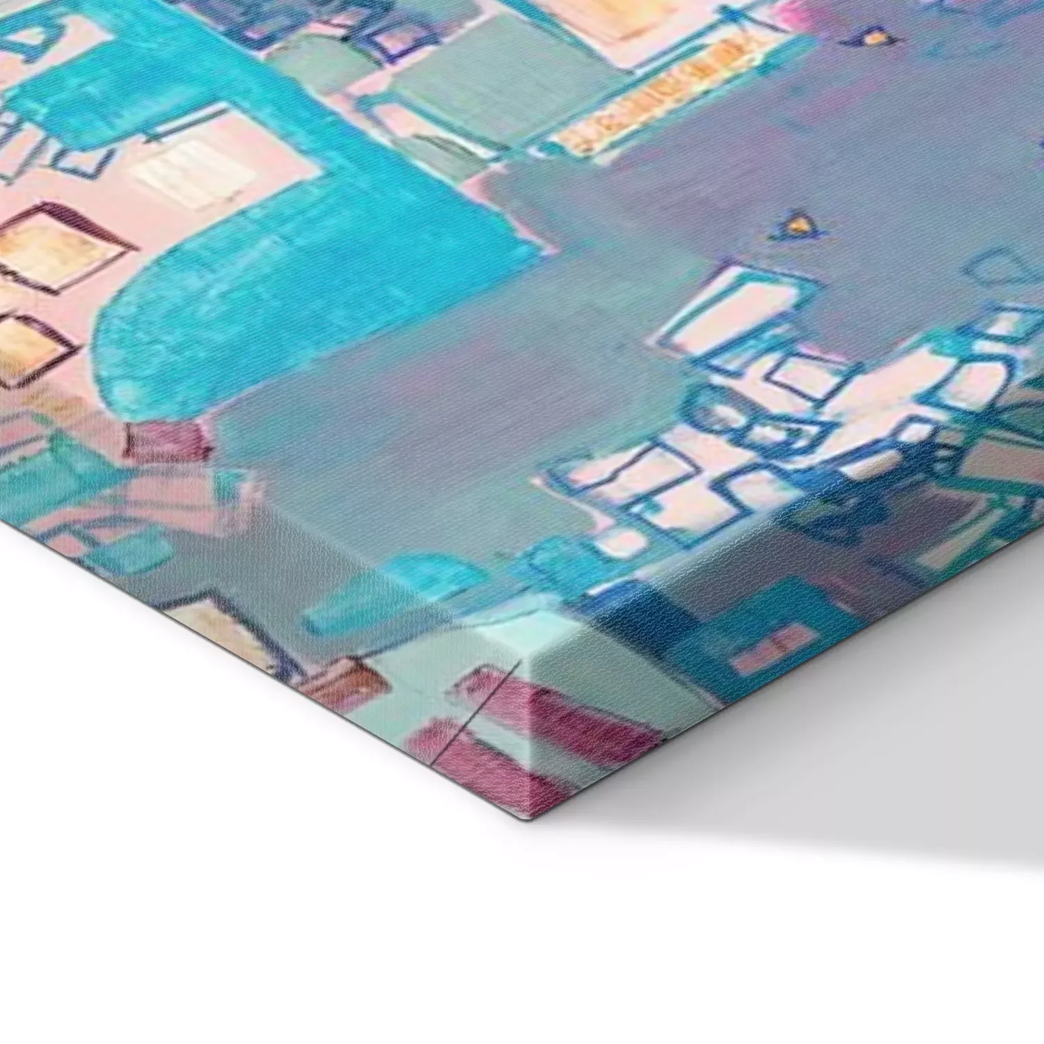 De print wordt aangebracht op hoogwaardig canvas dat op een schildersweefgetouw (spieraam) wordt gespannen. Omdat de print de zijranden bedekt, hoeft het ontwerp niet met een extra kader te worden omlijst. Wij raden ook composities aan die uit meerdere foto's bestaan en zo een coherente compositie vormen.