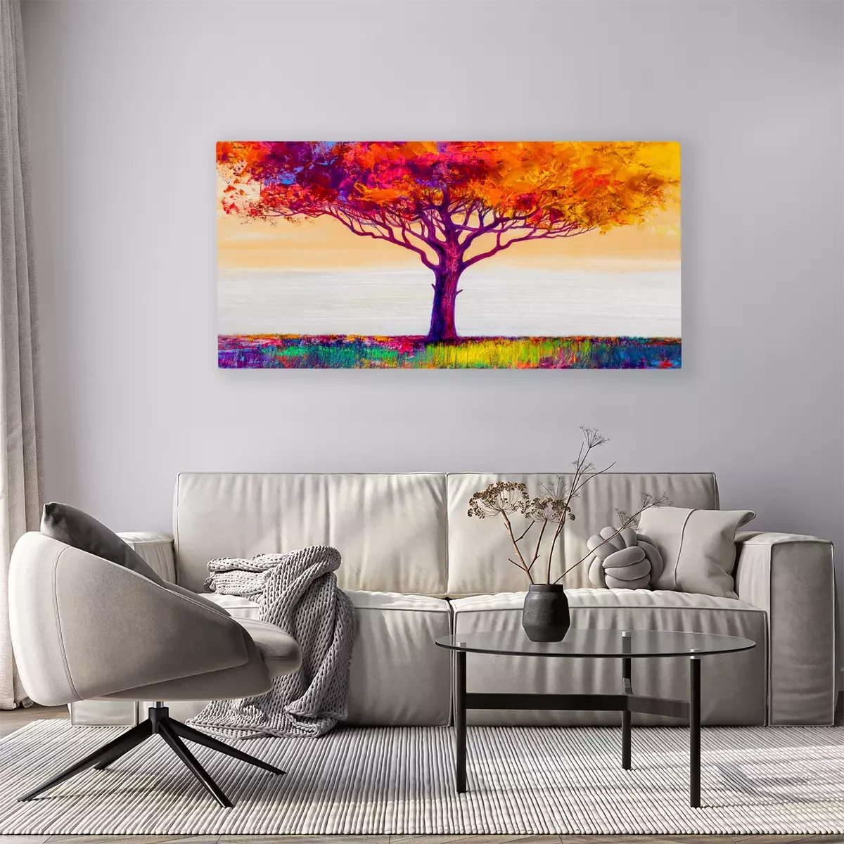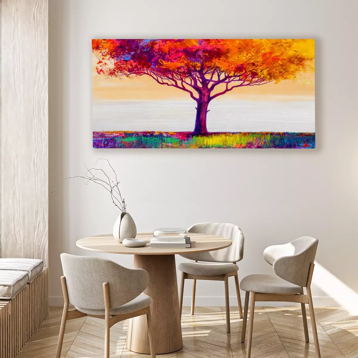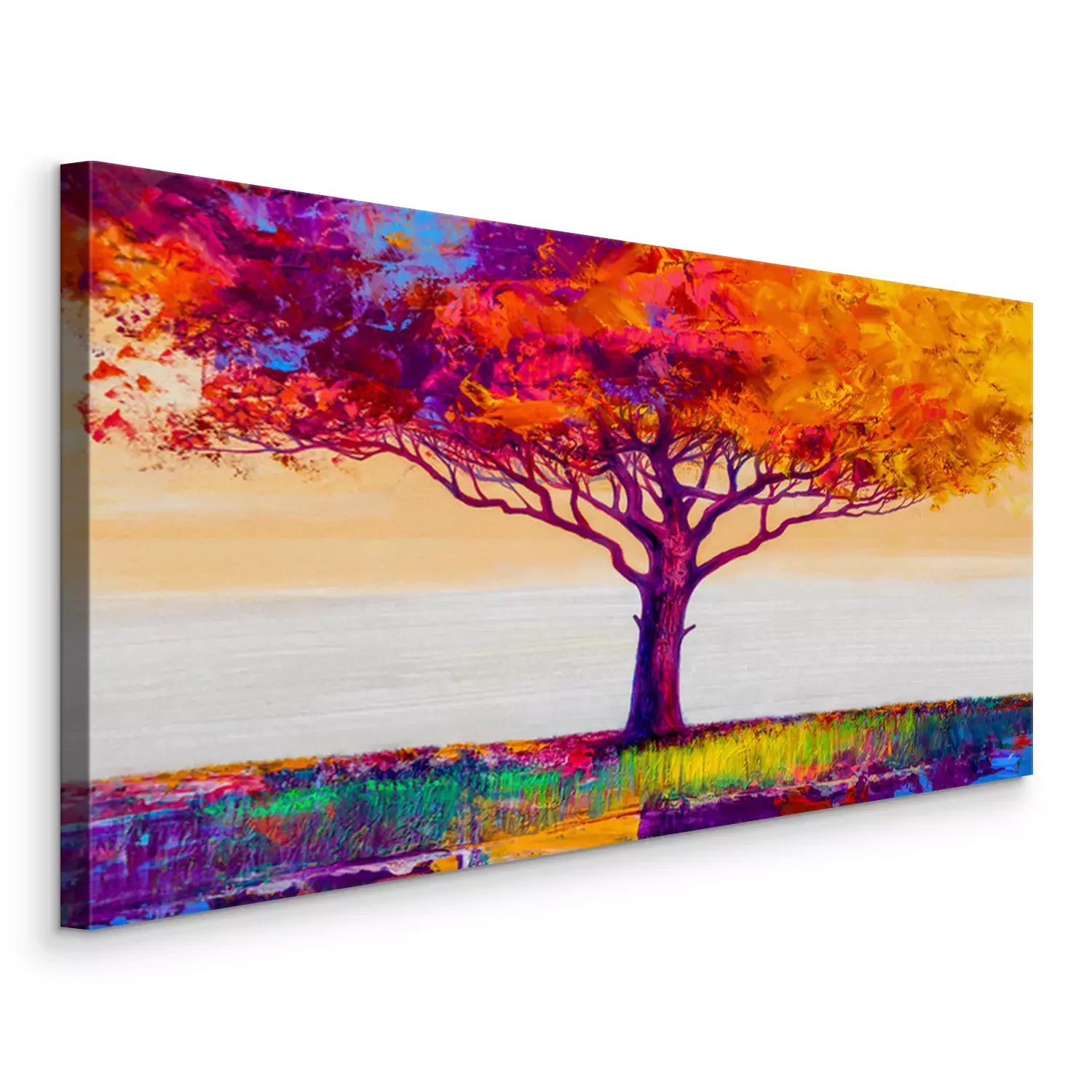 Canvas: Oil painting landscape. Colorful autumn tree. Abstract style.