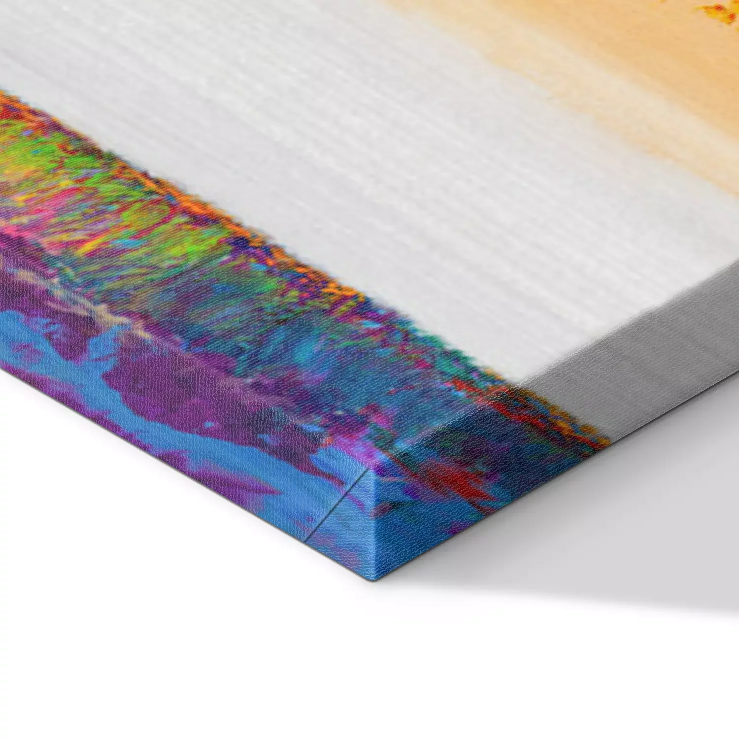 De print wordt aangebracht op hoogwaardig canvas dat op een schildersweefgetouw (spieraam) wordt gespannen. Omdat de print de zijranden bedekt, hoeft het ontwerp niet met een extra kader te worden omlijst. Wij raden ook composities aan die uit meerdere foto's bestaan en zo een coherente compositie vormen.