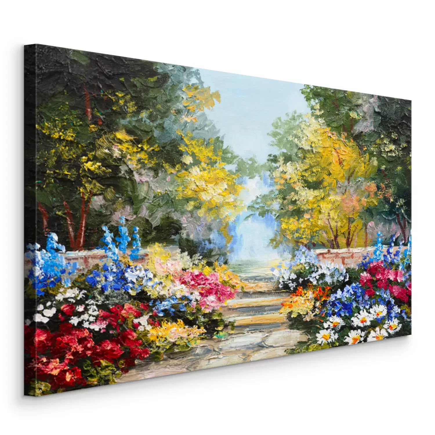 Canvas Oil painting landscape - colorful summer forest, beautiful flowers