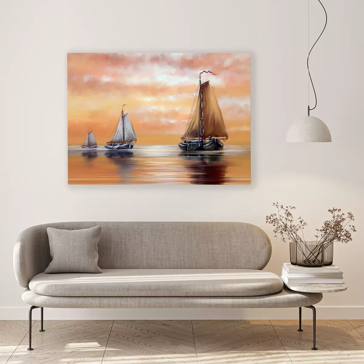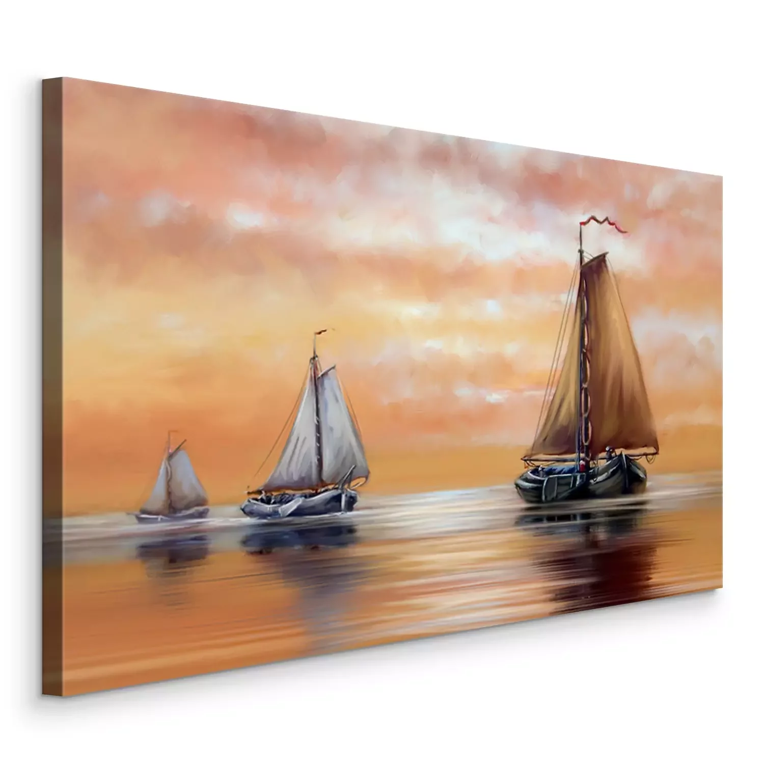 Canvas Oil paintings sea landscape, sailboat at sunset. Fine art.