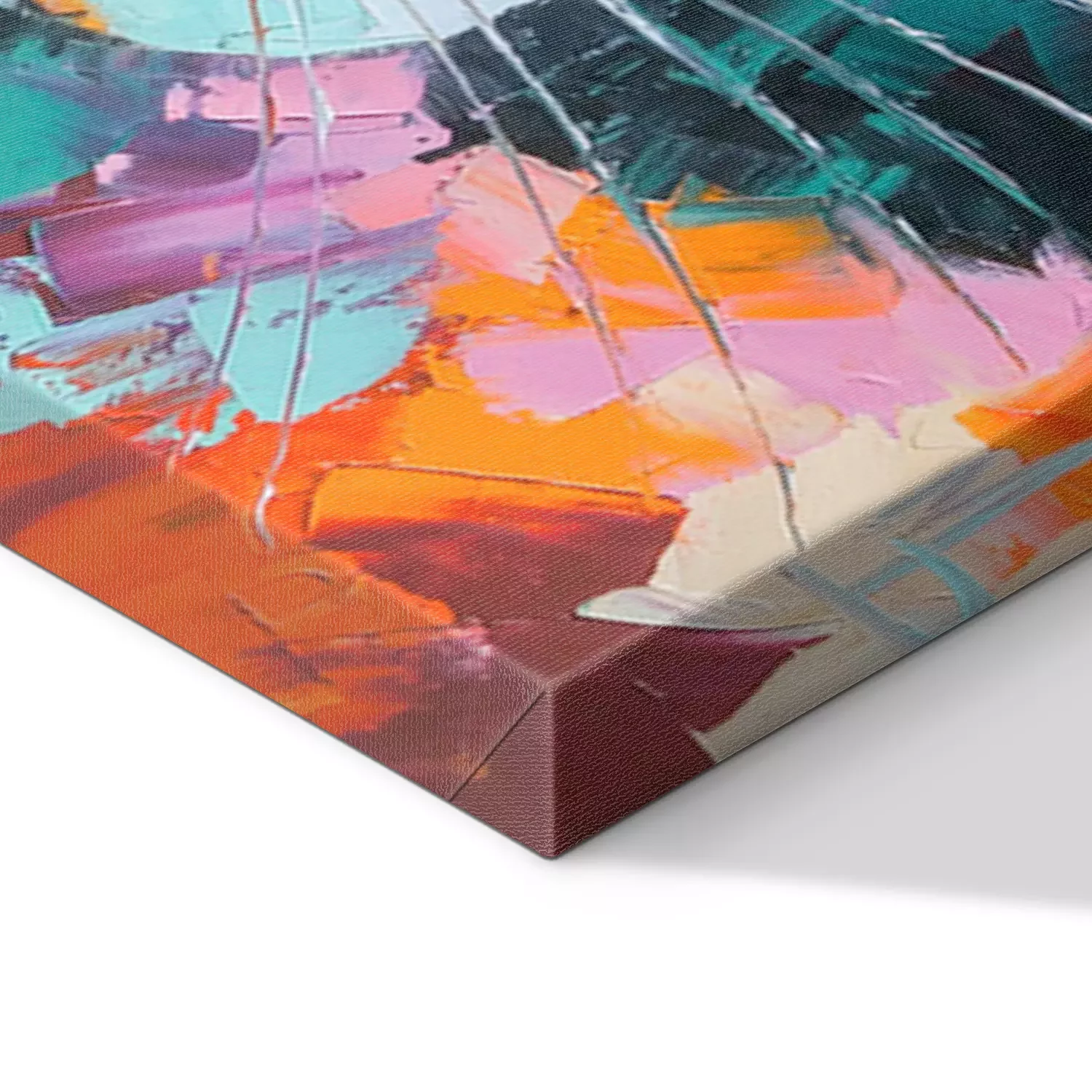 De print wordt aangebracht op hoogwaardig canvas dat op een schildersweefgetouw (spieraam) wordt gespannen. Omdat de print de zijranden bedekt, hoeft het ontwerp niet met een extra kader te worden omlijst. Wij raden ook composities aan die uit meerdere foto's bestaan en zo een coherente compositie vormen.