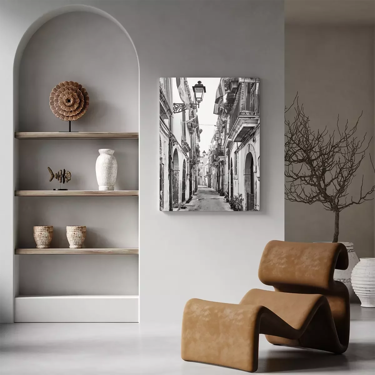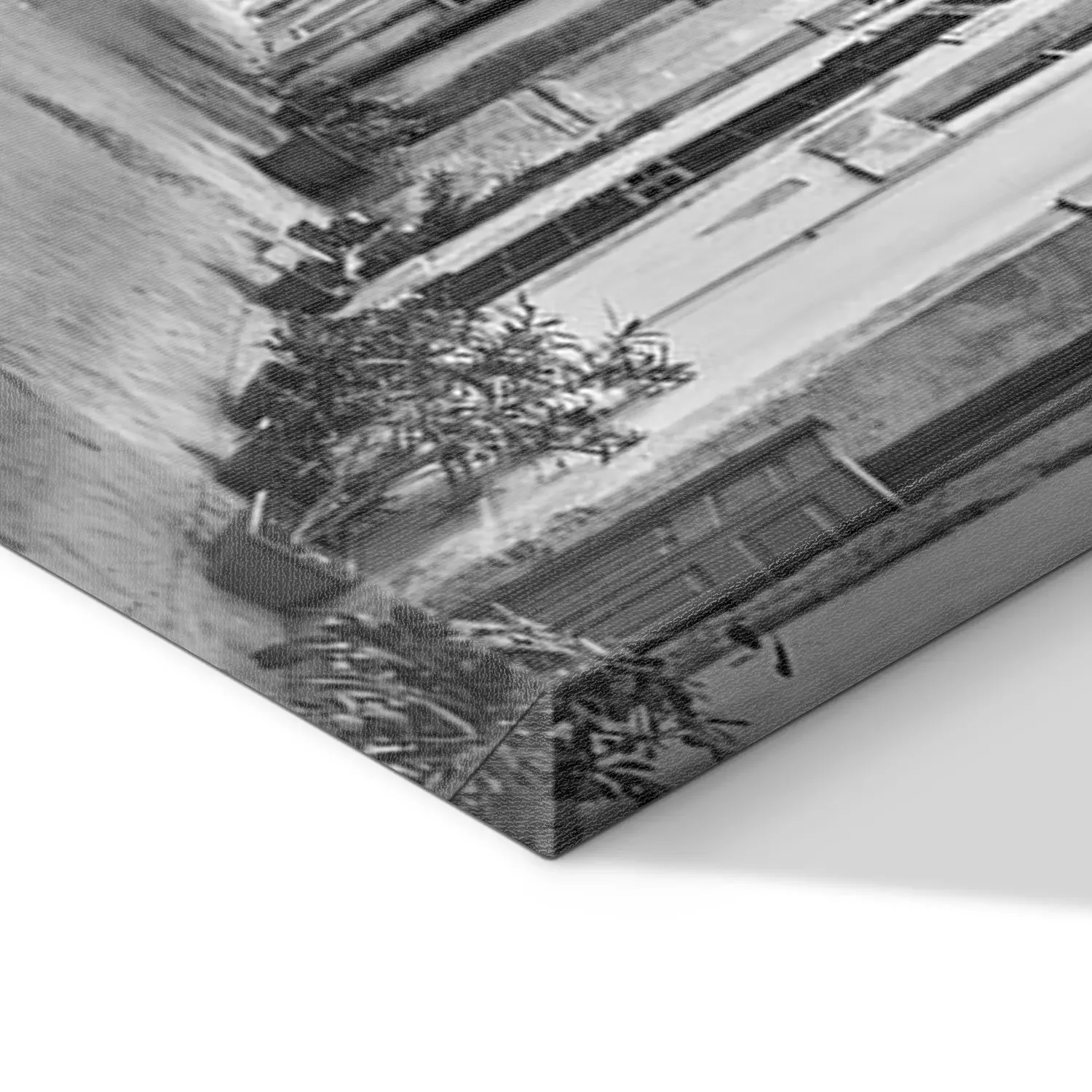De print wordt aangebracht op hoogwaardig canvas dat op een schildersweefgetouw (spieraam) wordt gespannen. Omdat de print de zijranden bedekt, hoeft het ontwerp niet met een extra kader te worden omlijst. Wij raden ook composities aan die uit meerdere foto's bestaan en zo een coherente compositie vormen.