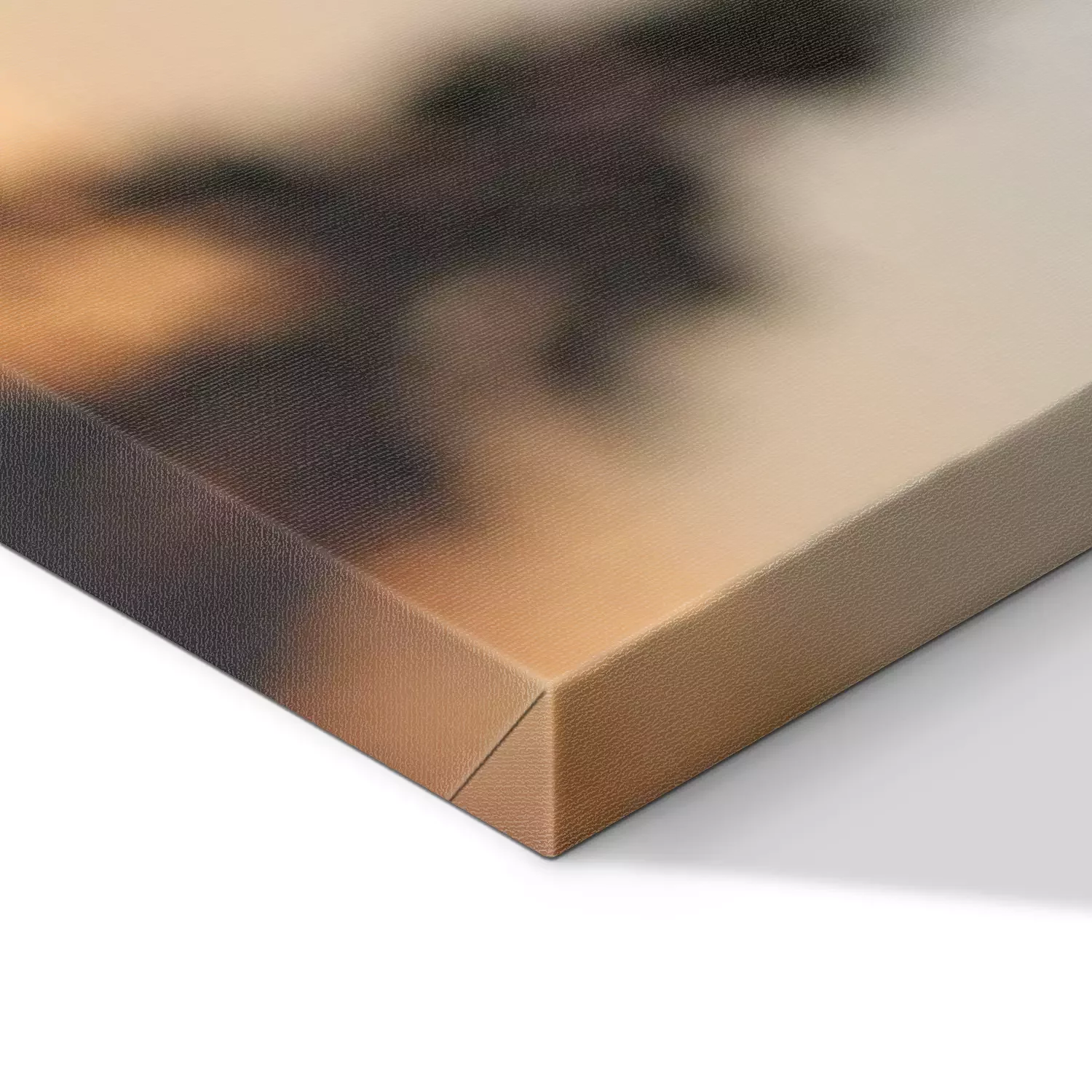 De print wordt aangebracht op hoogwaardig canvas dat op een schildersweefgetouw (spieraam) wordt gespannen. Omdat de print de zijranden bedekt, hoeft het ontwerp niet met een extra kader te worden omlijst. Wij raden ook composities aan die uit meerdere foto's bestaan en zo een coherente compositie vormen.