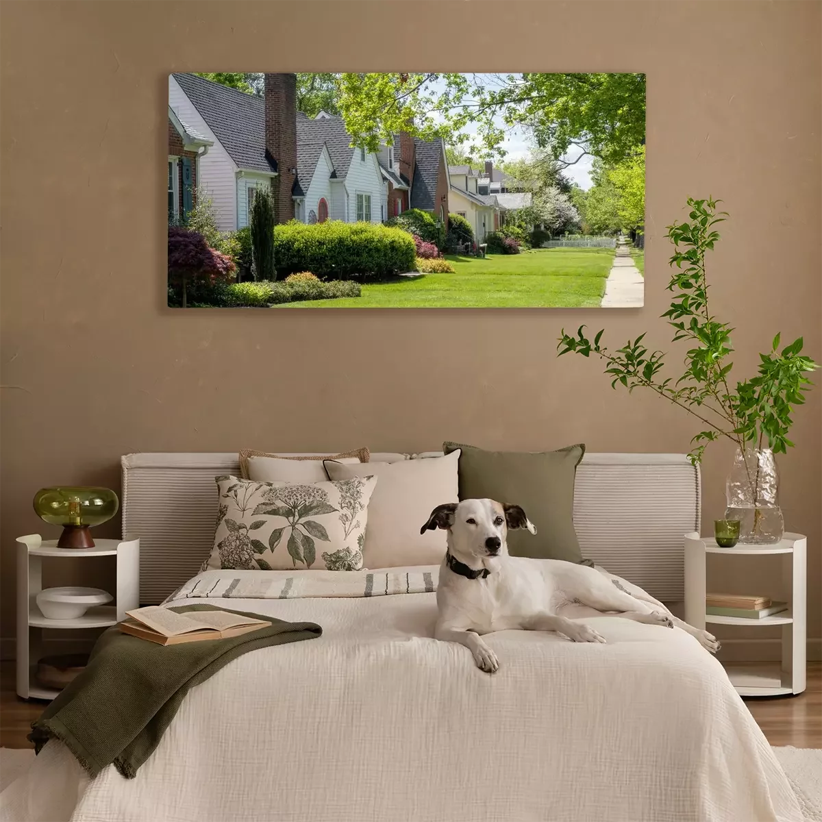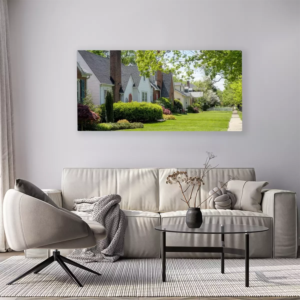 De print wordt aangebracht op hoogwaardig canvas dat op een schildersweefgetouw (spieraam) wordt gespannen. Omdat de print de zijranden bedekt, hoeft het ontwerp niet met een extra kader te worden omlijst. Wij raden ook composities aan die uit meerdere foto's bestaan en zo een coherente compositie vormen.