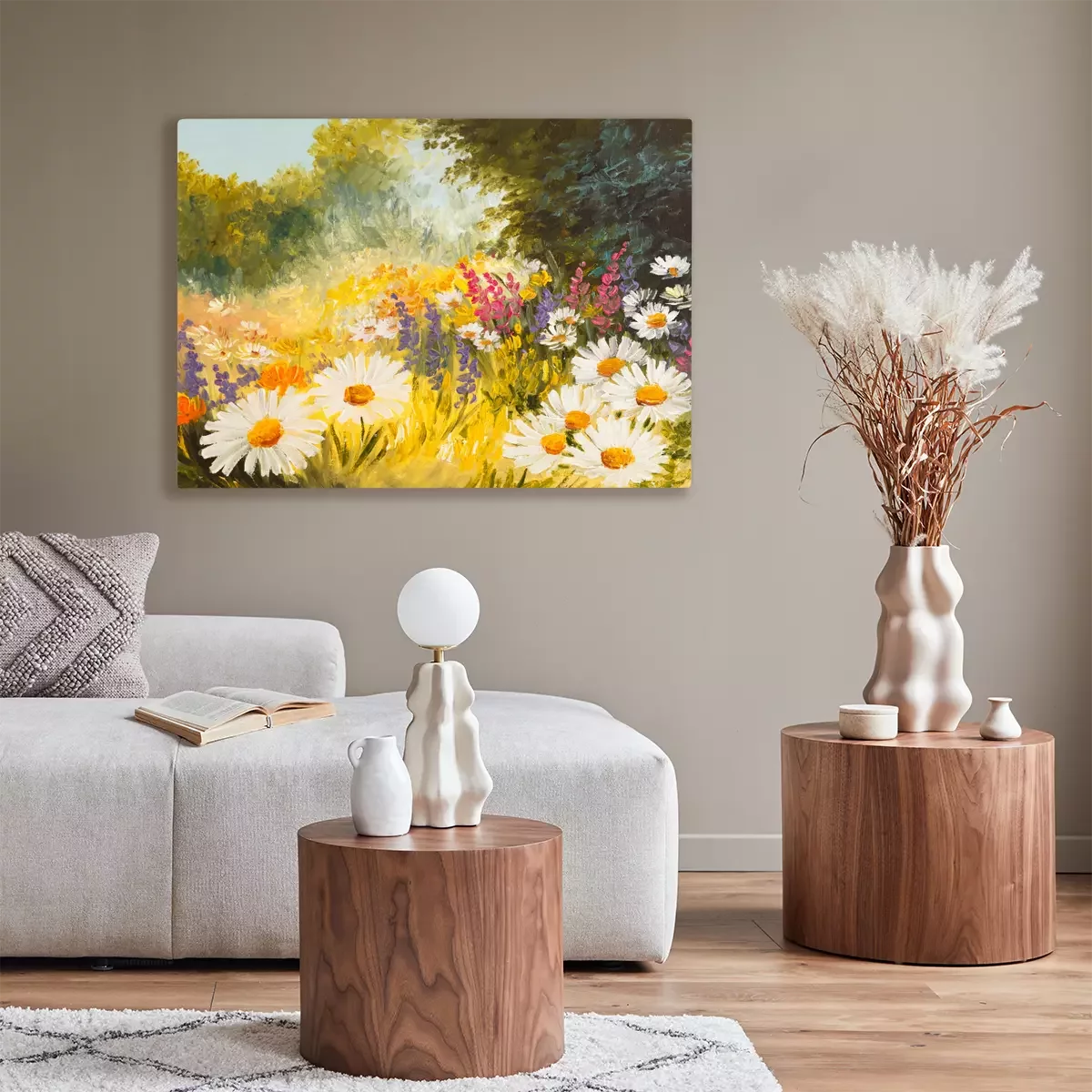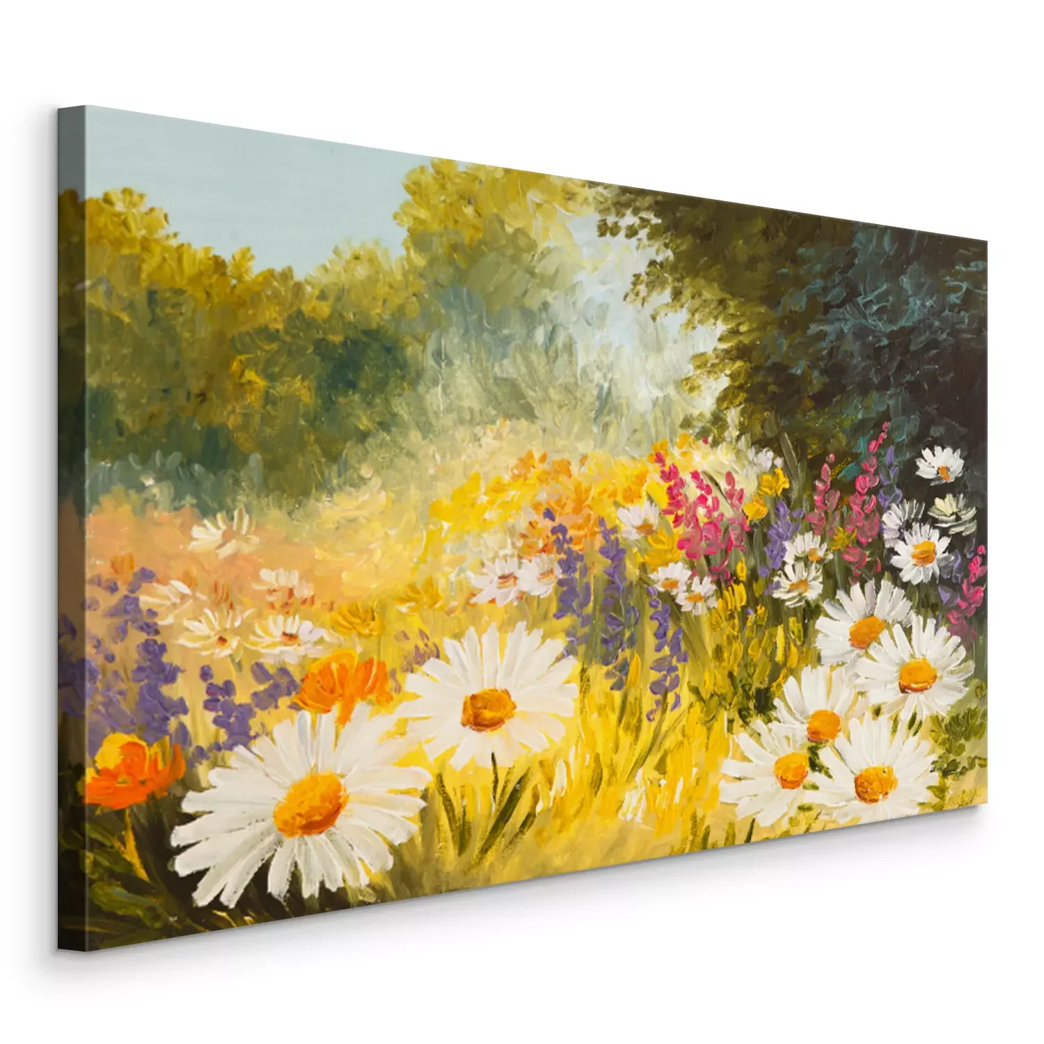 Canvas Olieverf - gebied van madeliefjes. colorfull art tekening