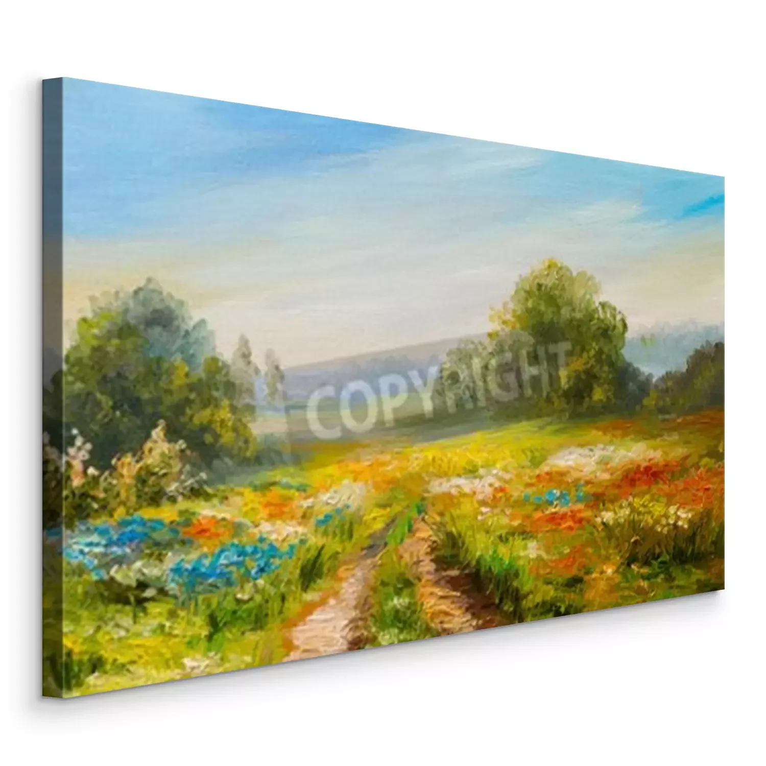 Canvas Olieverf landschap, kleurrijk gebied van bloemen, abstract impressionisme