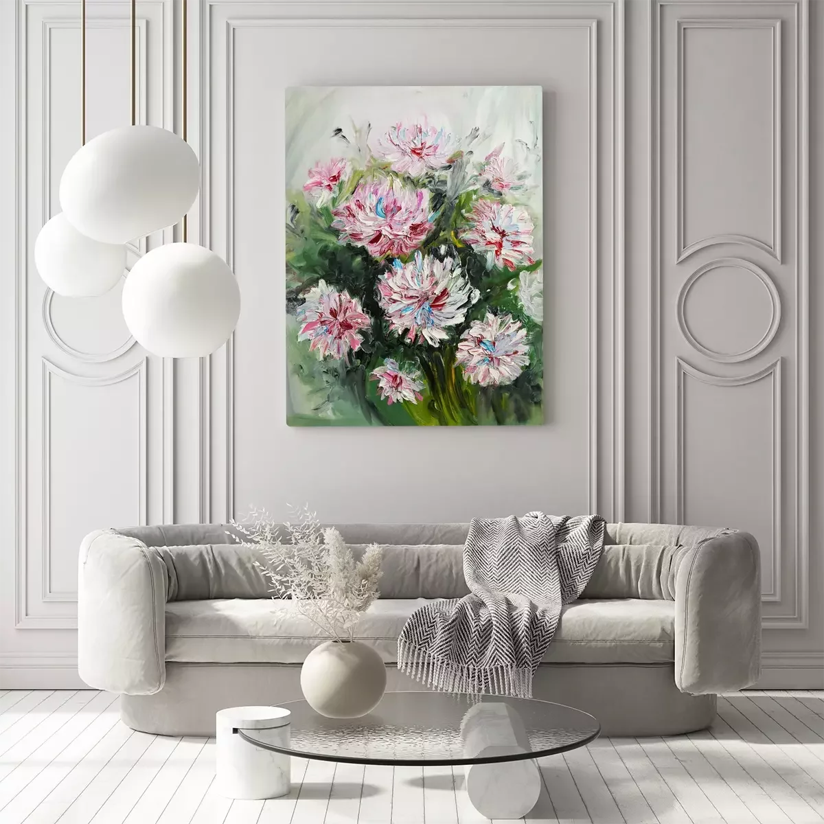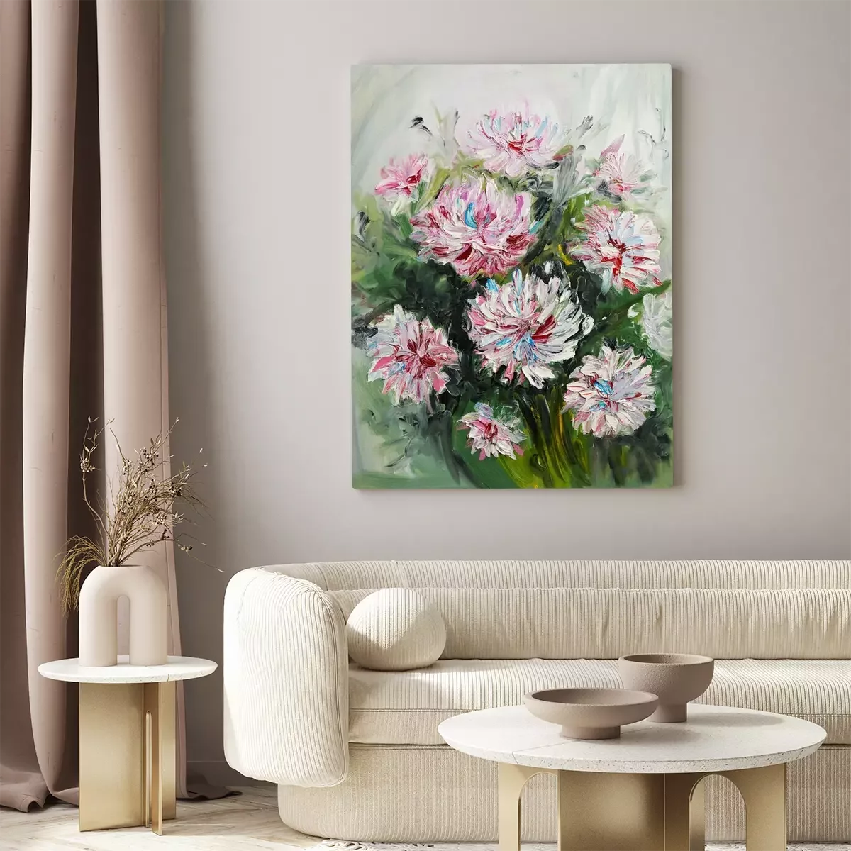 Canvas: Olieverfschilderij boeket van pioenrozen