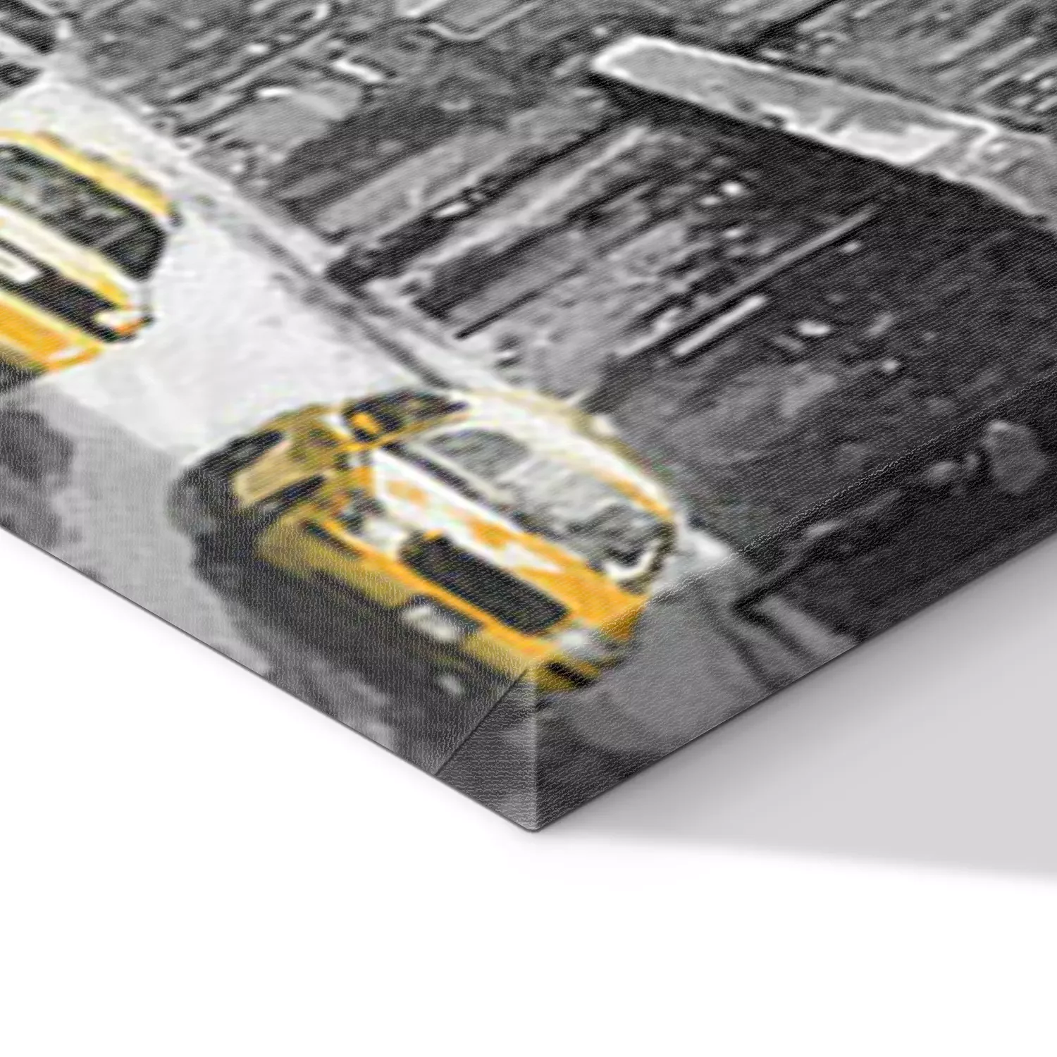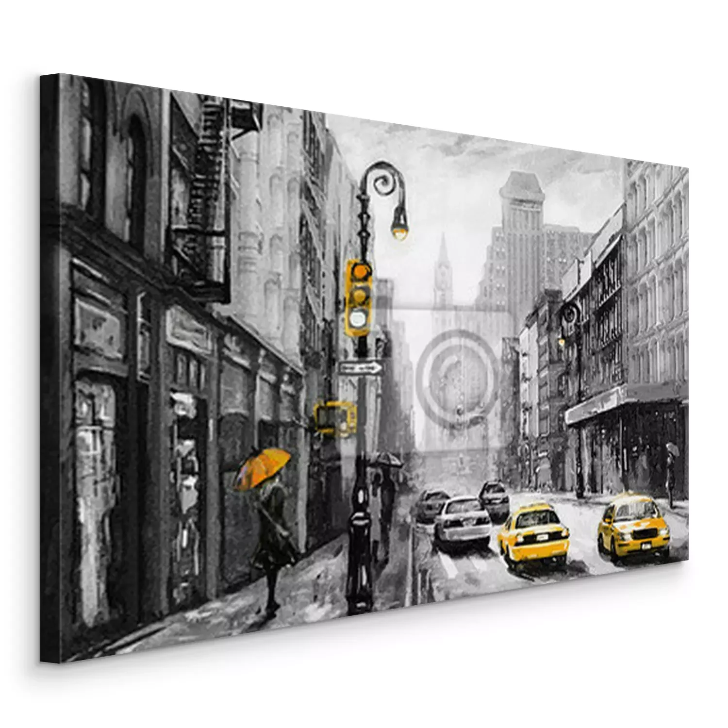 Canvas: olieverfschilderij op canvas, straatmening van New York, man en vrouw, gele taxi, modern Kunstwerk, Amerikaanse stad, illustratie New York
