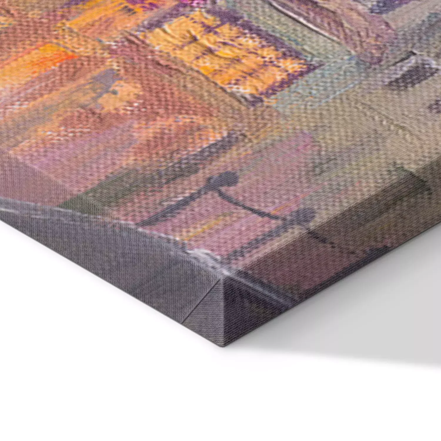 De print wordt aangebracht op hoogwaardig canvas dat op een schildersweefgetouw (spieraam) wordt gespannen. Omdat de print de zijranden bedekt, hoeft het ontwerp niet met een extra kader te worden omlijst. Wij raden ook composities aan die uit meerdere foto's bestaan en zo een coherente compositie vormen.