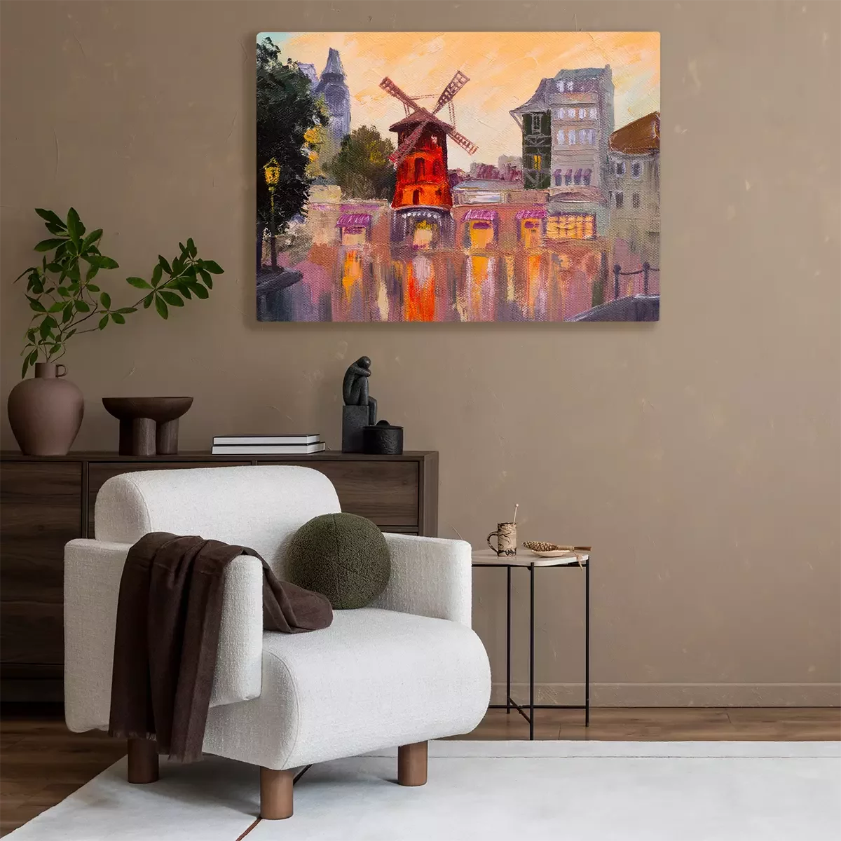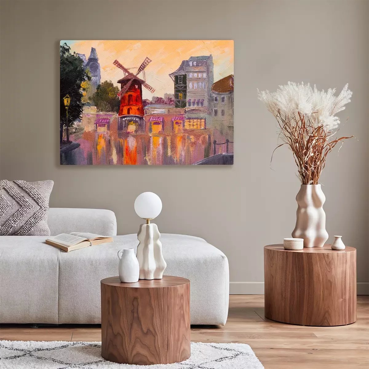 Canvas Olieverfschilderij stadsbeeld - Moulin rouge, Parijs, Frankrijk