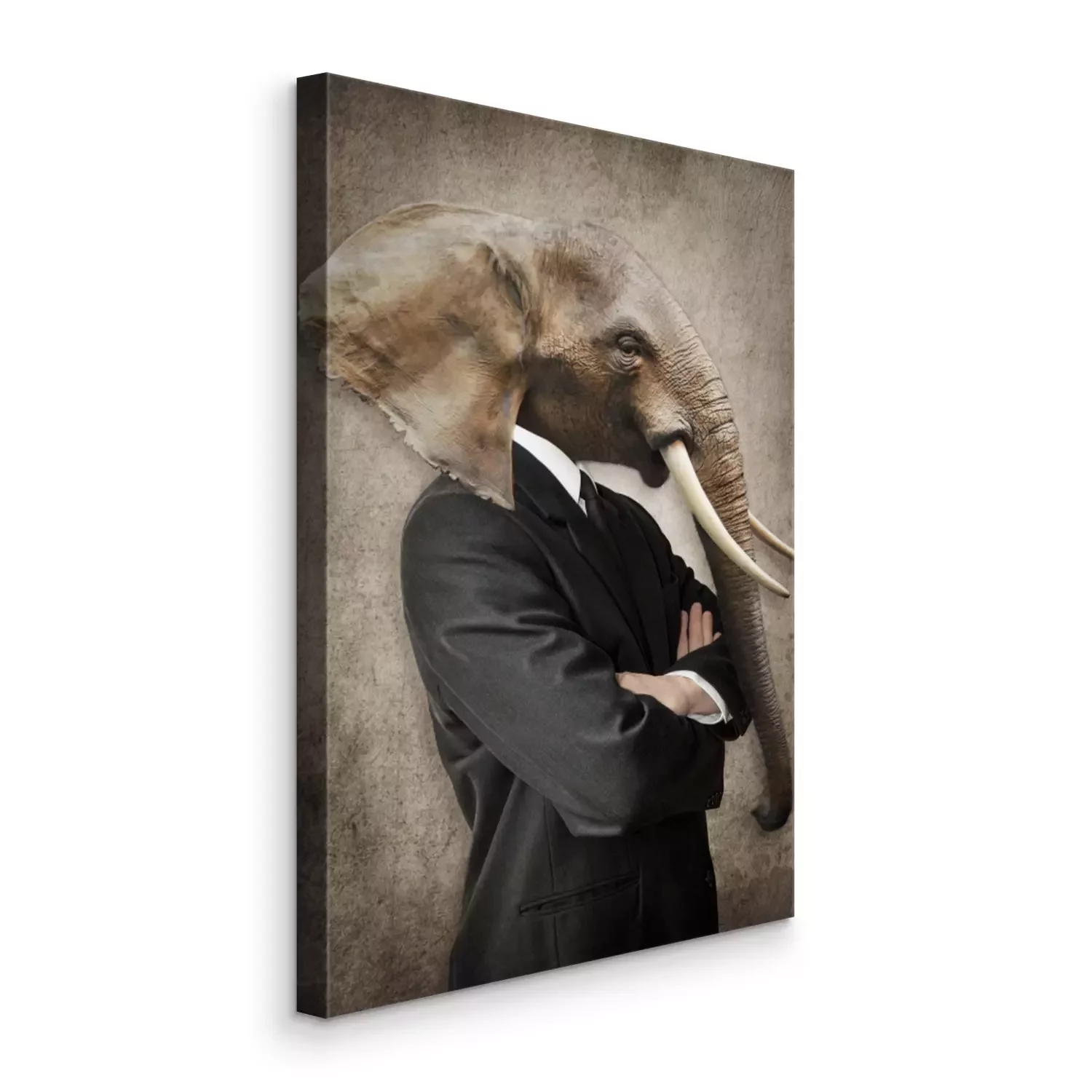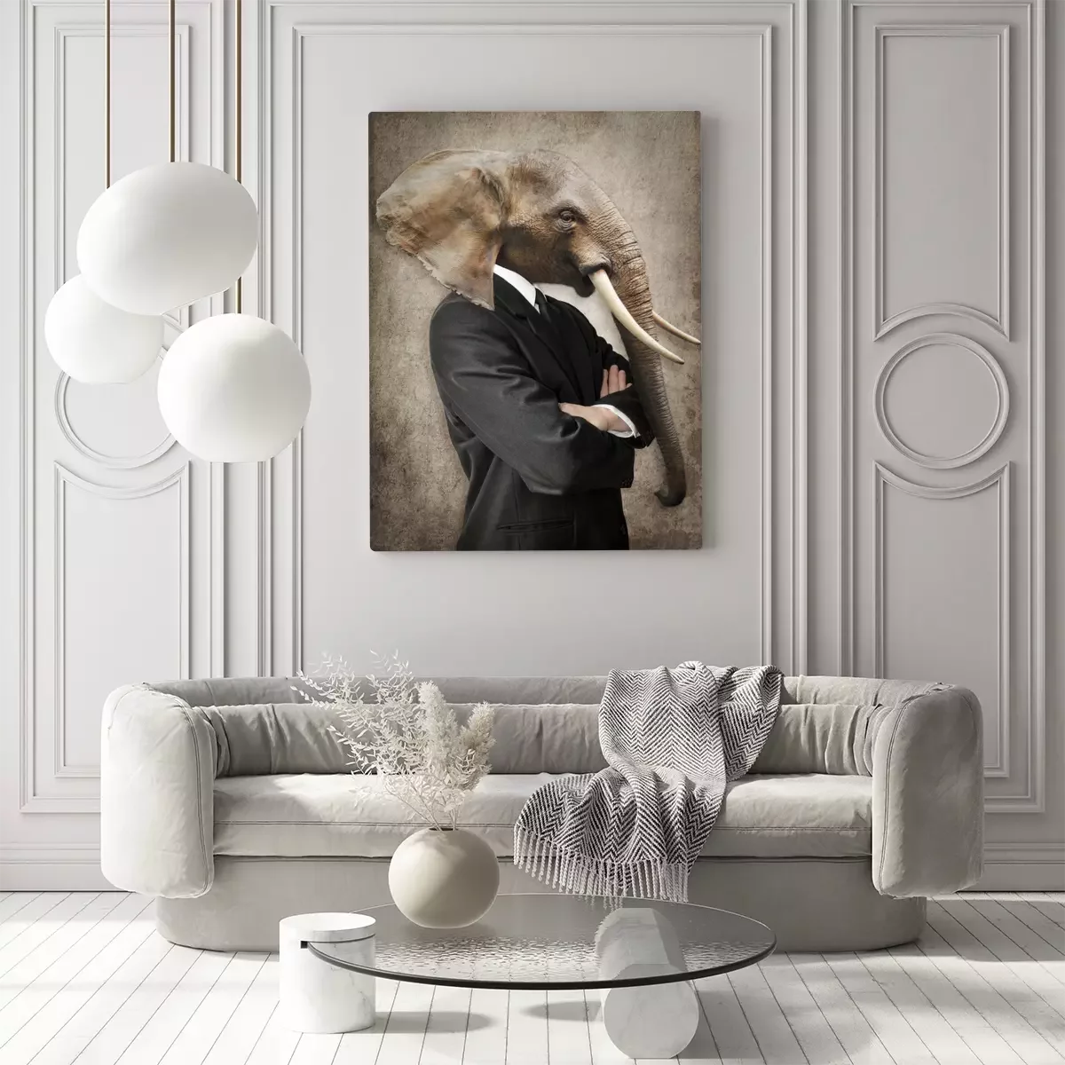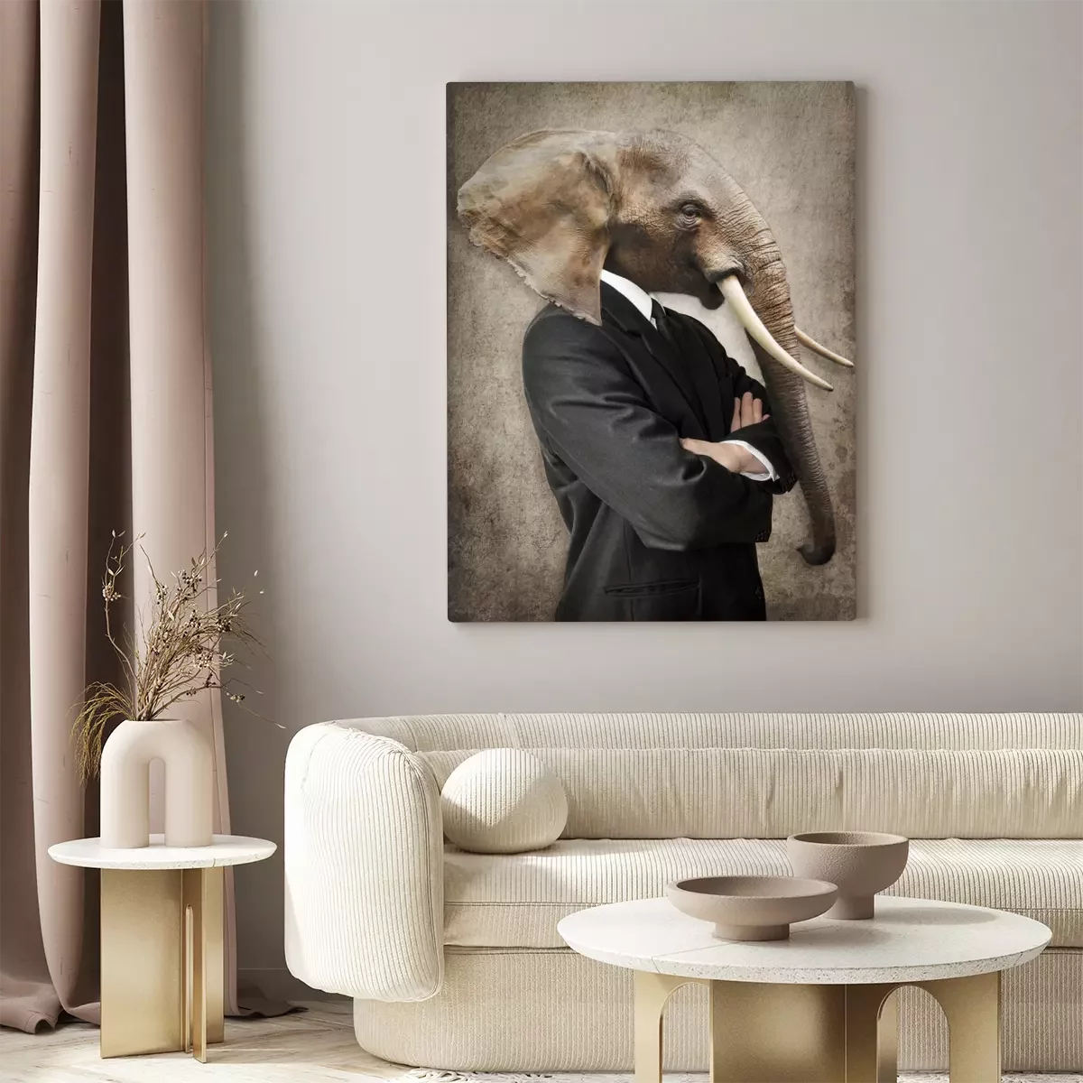 Canvas: Olifant in een pak. Man met het hoofd van een olifant. Concept grafisch in vintage stijl.
