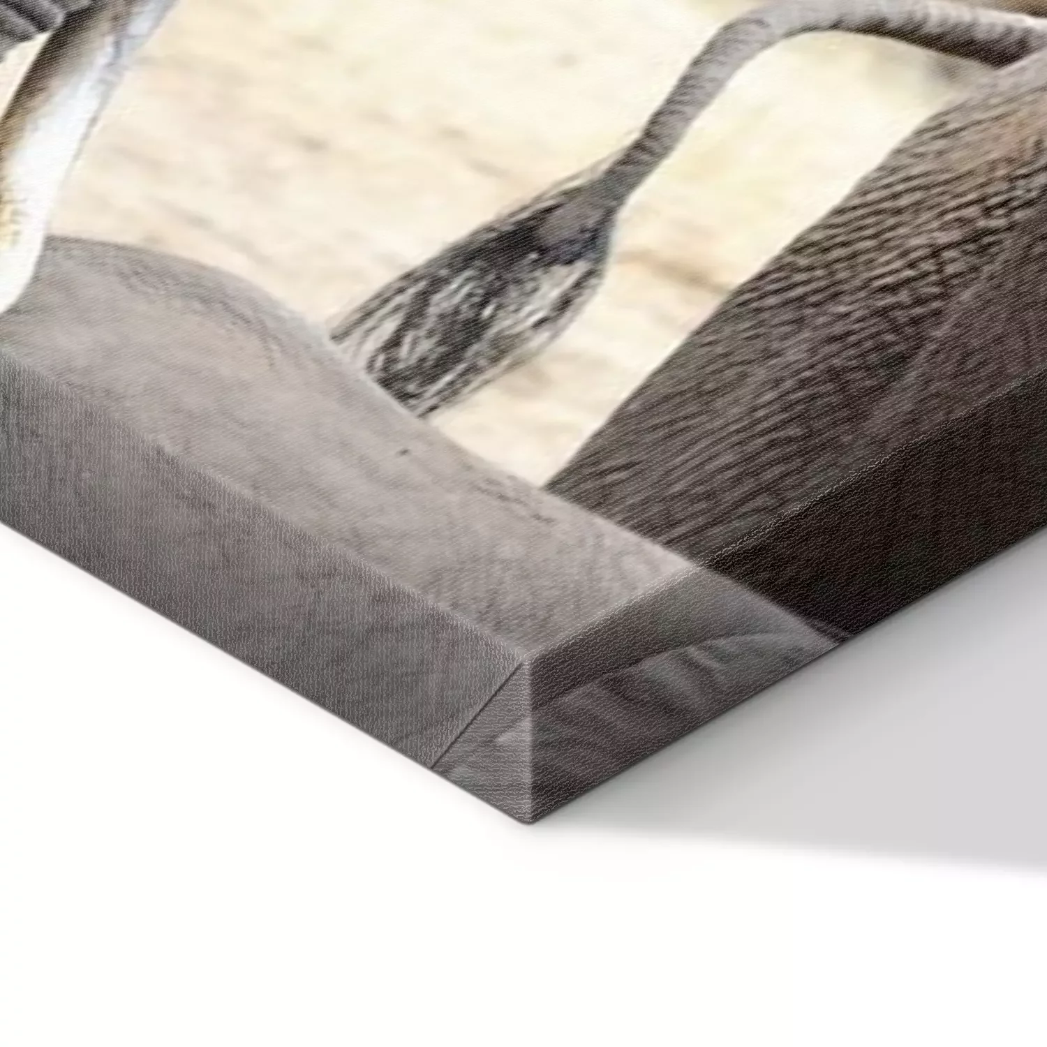 De print wordt aangebracht op hoogwaardig canvas dat op een schildersweefgetouw (spieraam) wordt gespannen. Omdat de print de zijranden bedekt, hoeft het ontwerp niet met een extra kader te worden omlijst. Wij raden ook composities aan die uit meerdere foto's bestaan en zo een coherente compositie vormen.