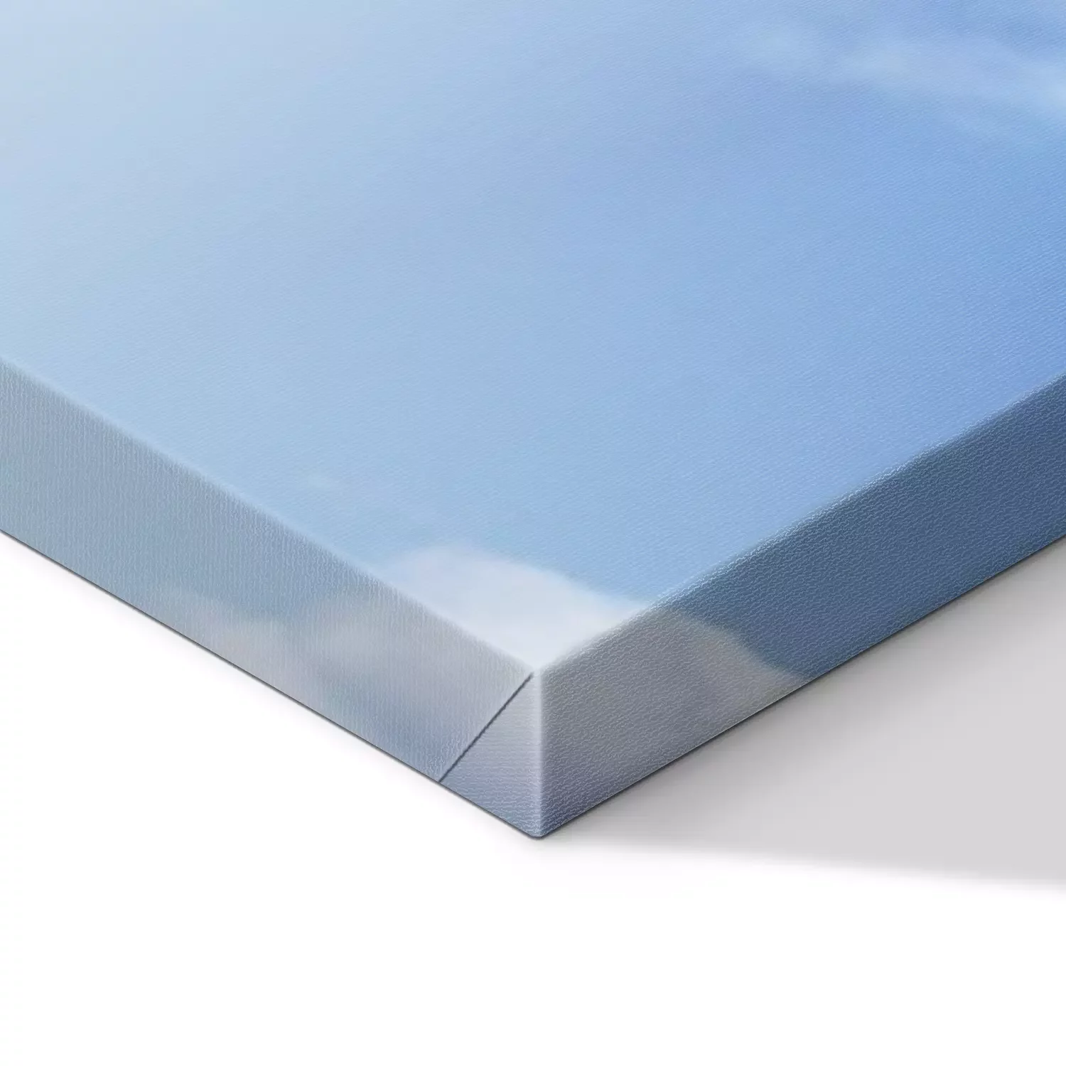 De print wordt aangebracht op hoogwaardig canvas dat op een schildersweefgetouw (spieraam) wordt gespannen. Omdat de print de zijranden bedekt, hoeft het ontwerp niet met een extra kader te worden omlijst. Wij raden ook composities aan die uit meerdere foto's bestaan en zo een coherente compositie vormen.