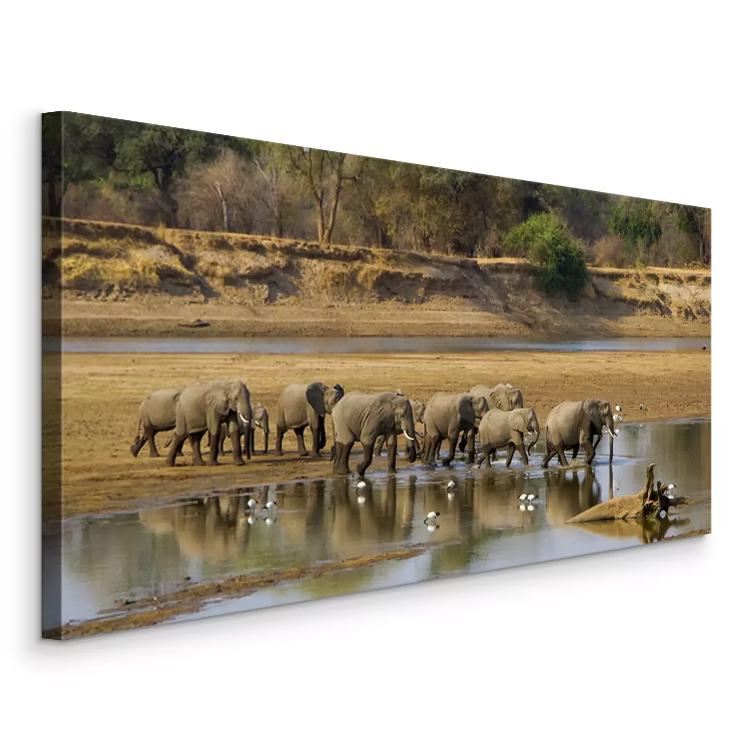 Canvas Olifanten die de rivier oversteken