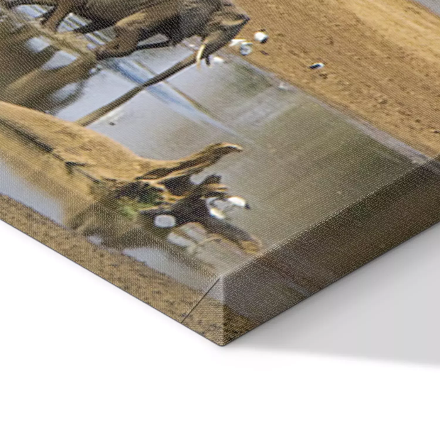 De print wordt aangebracht op hoogwaardig canvas dat op een schildersweefgetouw (spieraam) wordt gespannen. Omdat de print de zijranden bedekt, hoeft het ontwerp niet met een extra kader te worden omlijst. Wij raden ook composities aan die uit meerdere foto's bestaan en zo een coherente compositie vormen.
