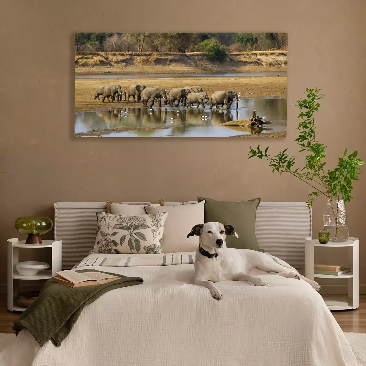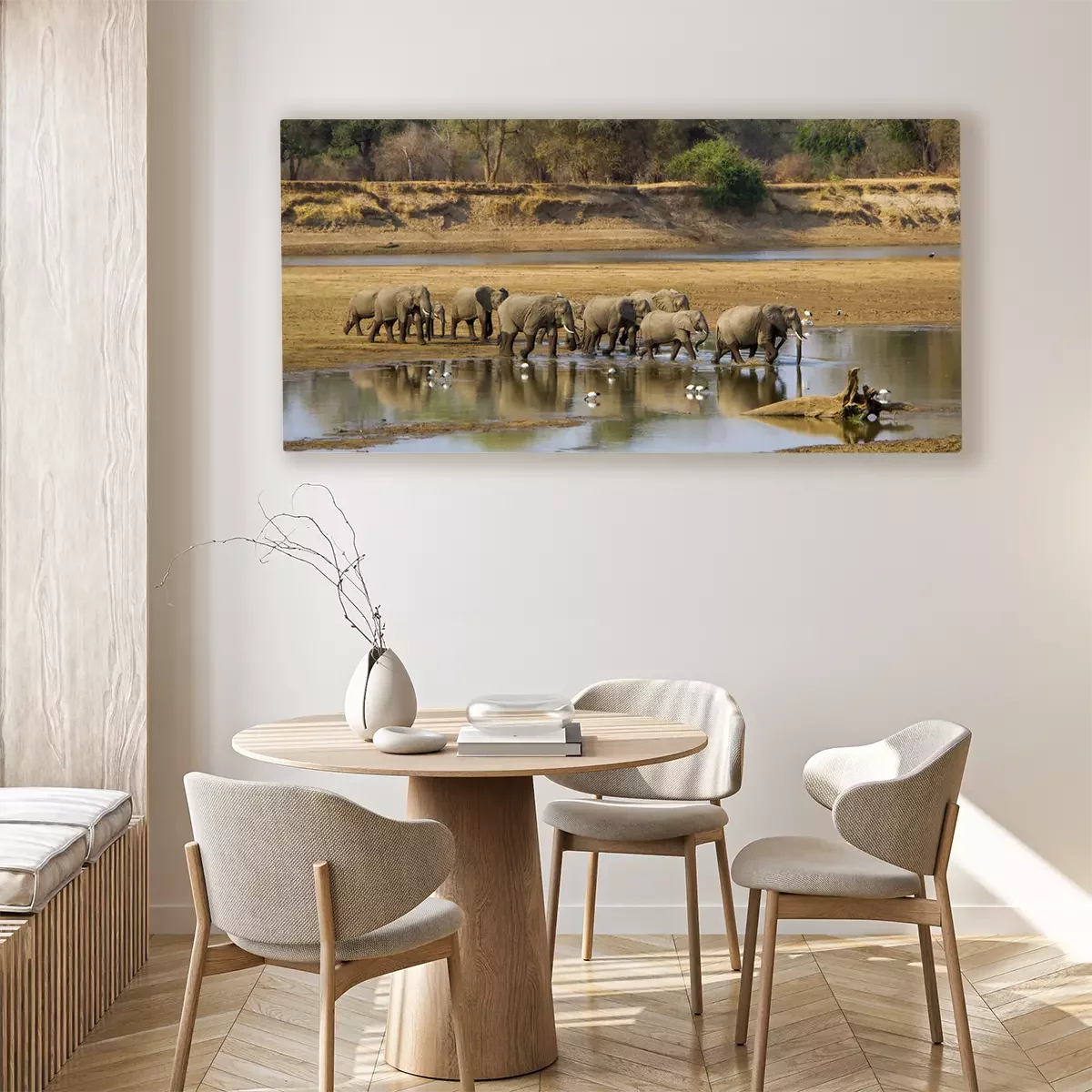 Canvas: Olifanten die de rivier oversteken