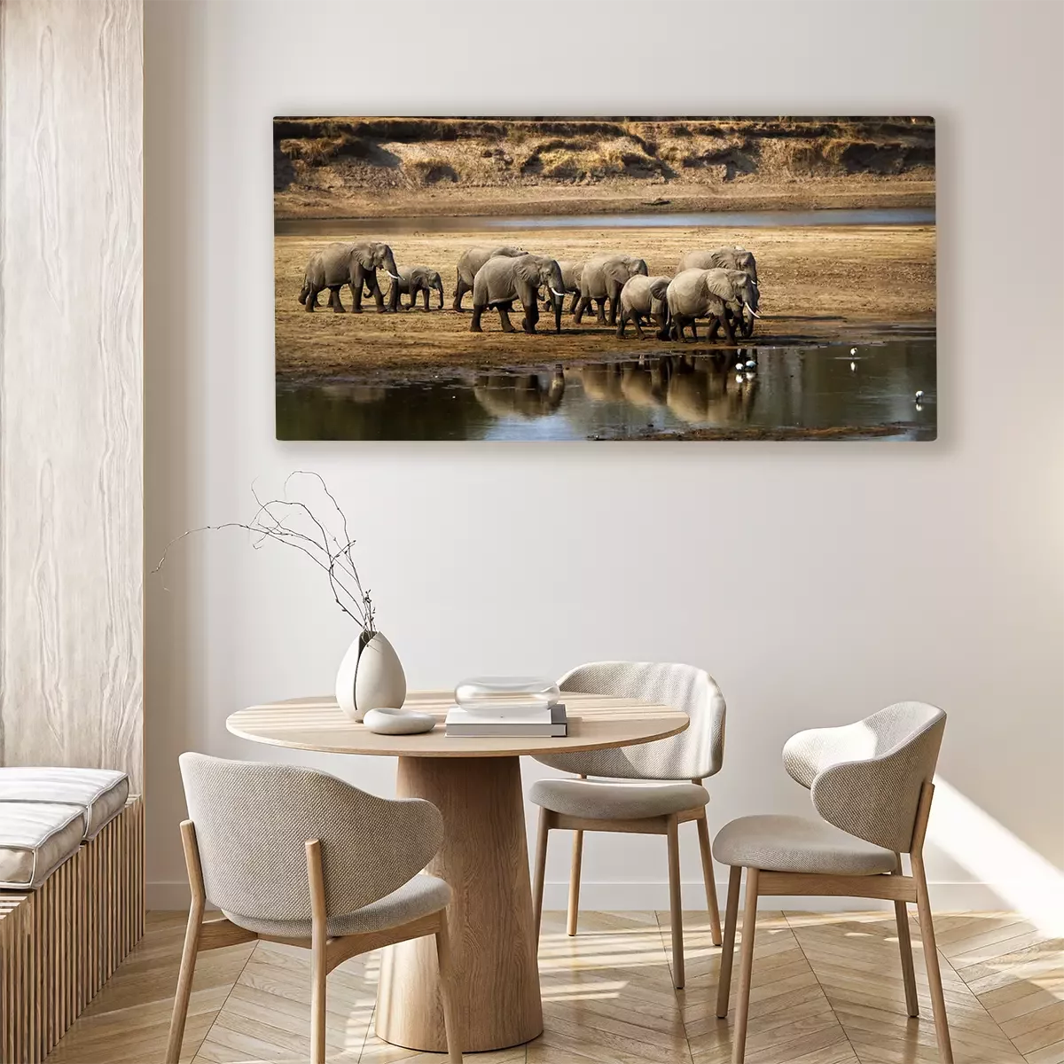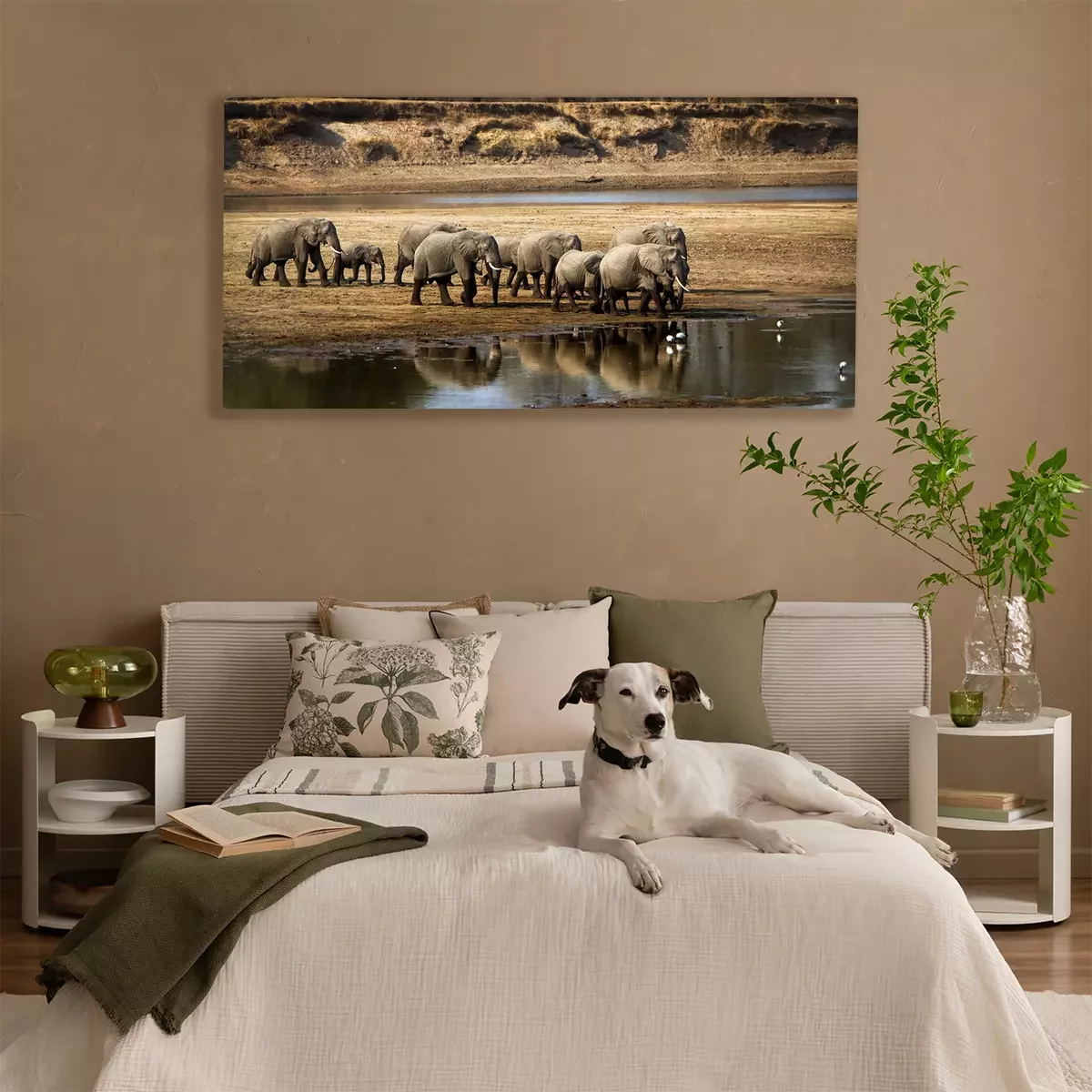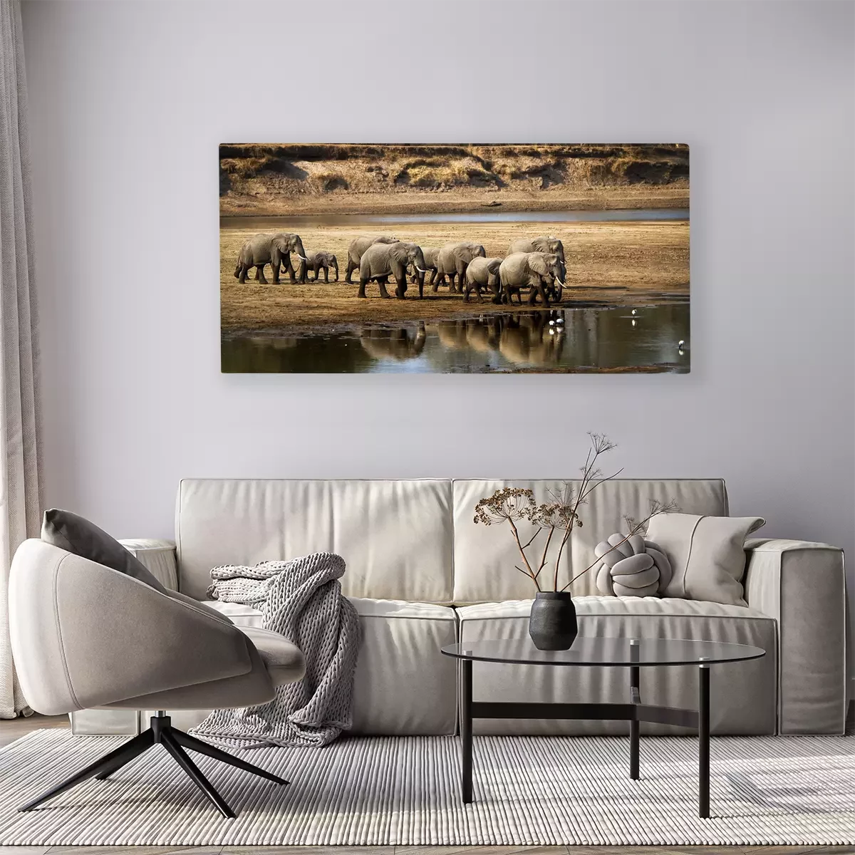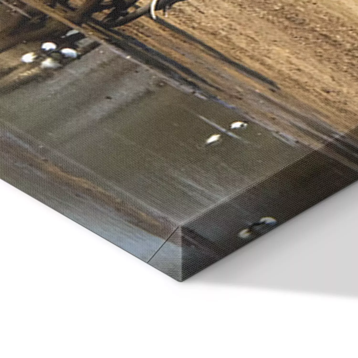 De print wordt aangebracht op hoogwaardig canvas dat op een schildersweefgetouw (spieraam) wordt gespannen. Omdat de print de zijranden bedekt, hoeft het ontwerp niet met een extra kader te worden omlijst. Wij raden ook composities aan die uit meerdere foto's bestaan en zo een coherente compositie vormen.