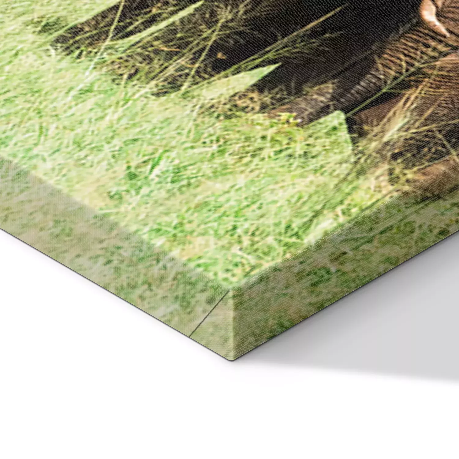 De print wordt aangebracht op hoogwaardig canvas dat op een schildersweefgetouw (spieraam) wordt gespannen. Omdat de print de zijranden bedekt, hoeft het ontwerp niet met een extra kader te worden omlijst. Wij raden ook composities aan die uit meerdere foto's bestaan en zo een coherente compositie vormen.