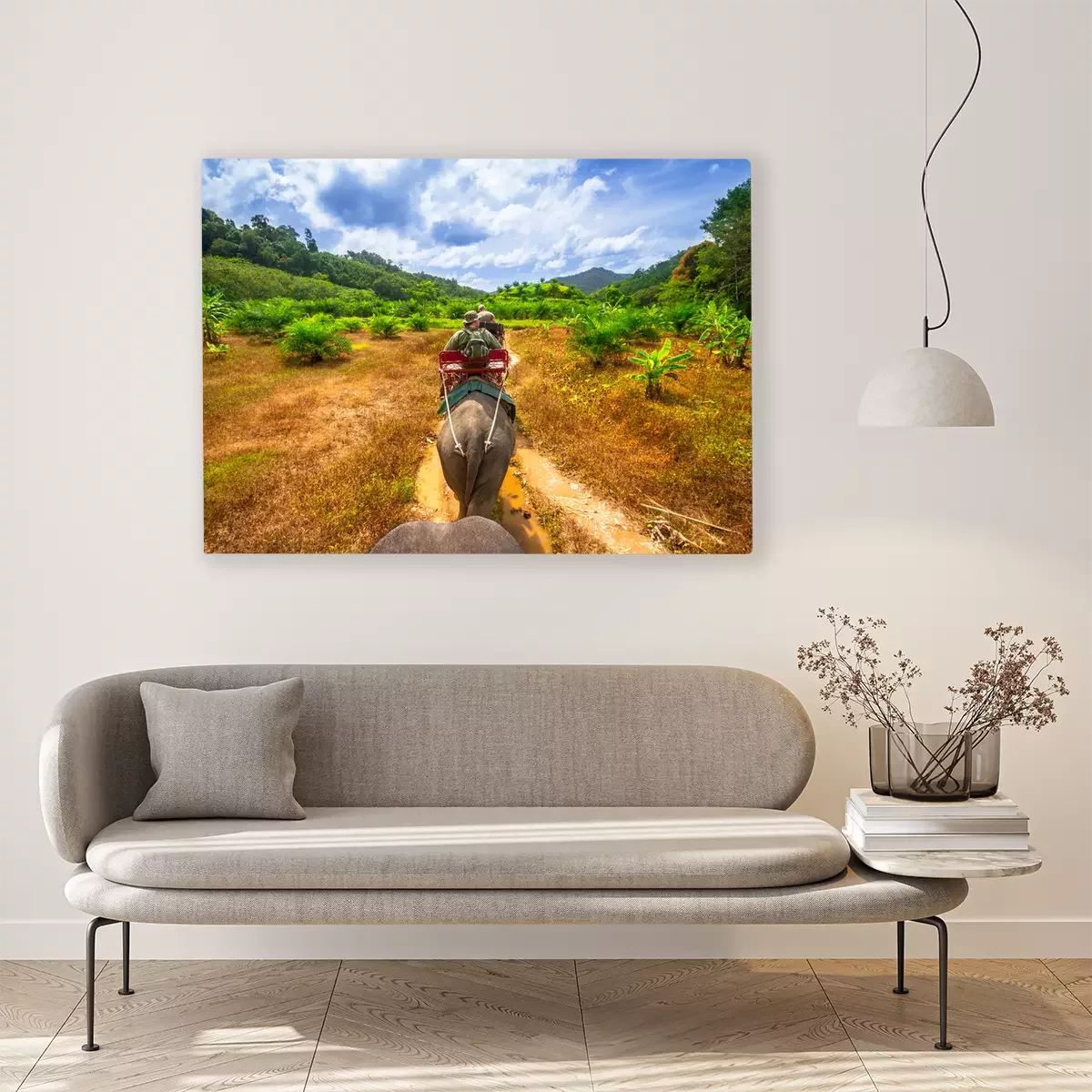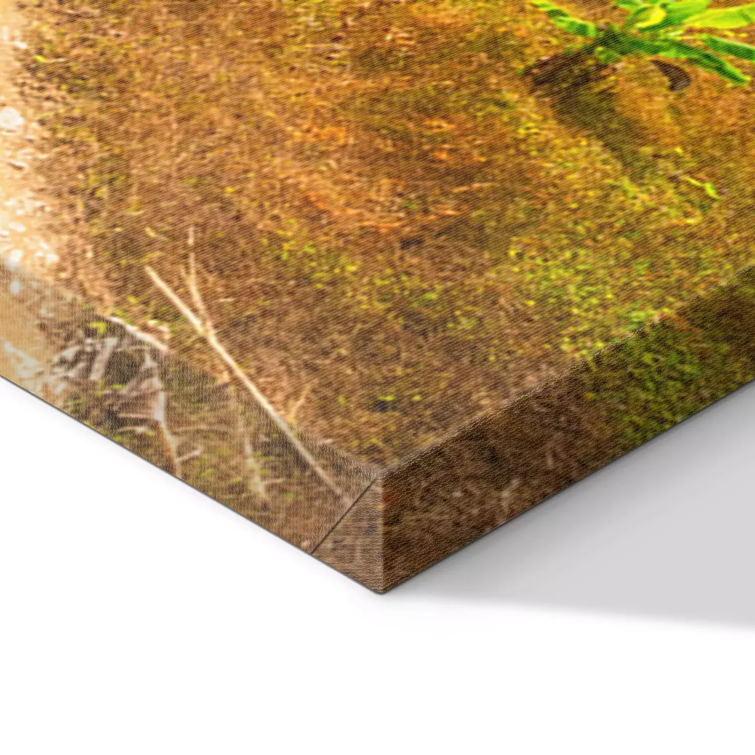 De print wordt aangebracht op hoogwaardig canvas dat op een schildersweefgetouw (spieraam) wordt gespannen. Omdat de print de zijranden bedekt, hoeft het ontwerp niet met een extra kader te worden omlijst. Wij raden ook composities aan die uit meerdere foto's bestaan en zo een coherente compositie vormen.