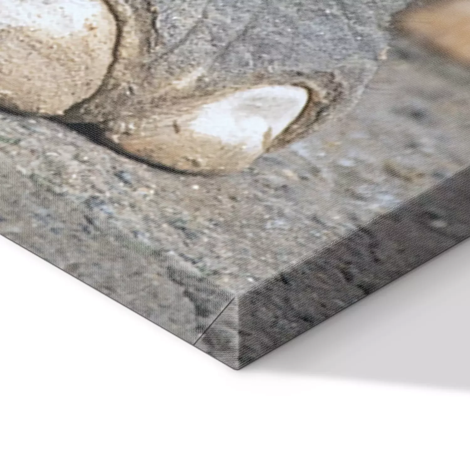 De print wordt aangebracht op hoogwaardig canvas dat op een schildersweefgetouw (spieraam) wordt gespannen. Omdat de print de zijranden bedekt, hoeft het ontwerp niet met een extra kader te worden omlijst. Wij raden ook composities aan die uit meerdere foto's bestaan en zo een coherente compositie vormen.