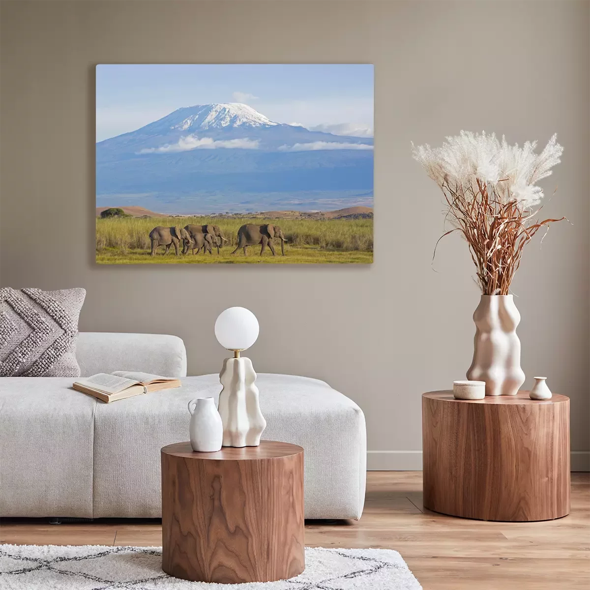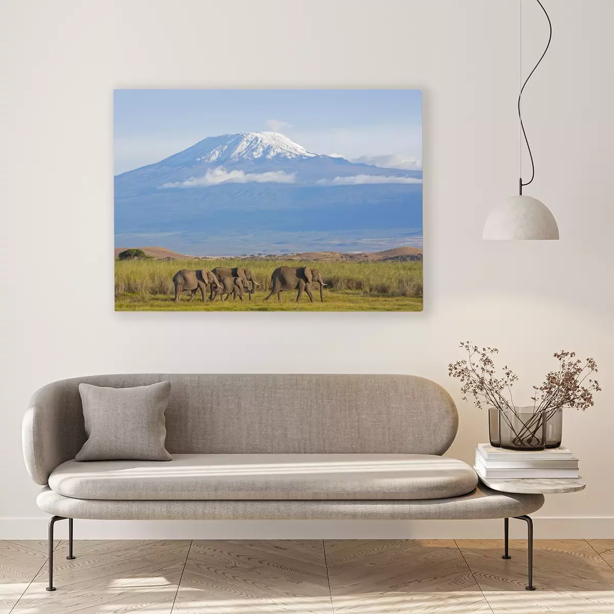 Canvas: Olifanten tegen de achtergrond van bergen en natuur