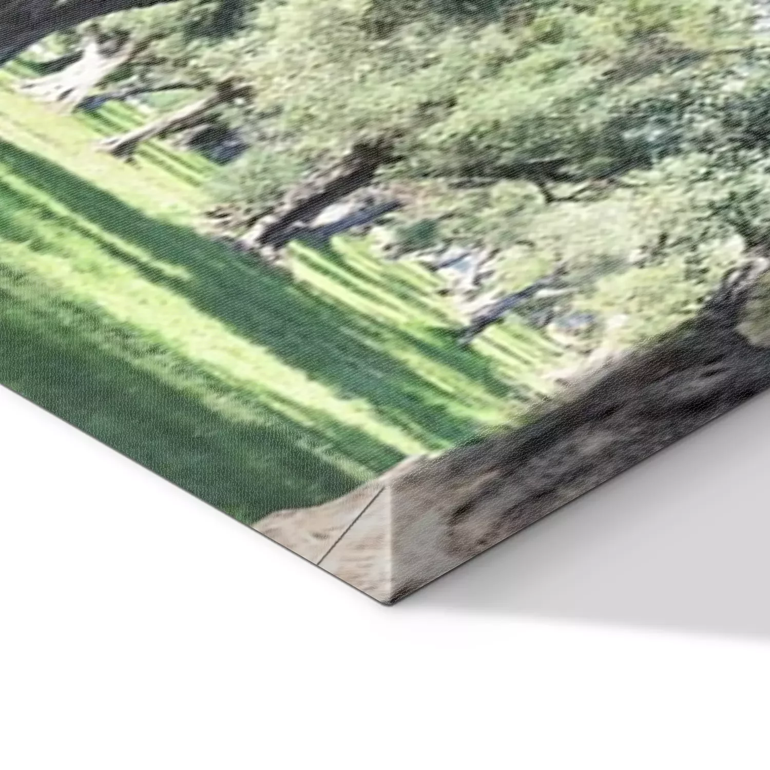 De print wordt aangebracht op hoogwaardig canvas dat op een schildersweefgetouw (spieraam) wordt gespannen. Omdat de print de zijranden bedekt, hoeft het ontwerp niet met een extra kader te worden omlijst. Wij raden ook composities aan die uit meerdere foto's bestaan en zo een coherente compositie vormen.