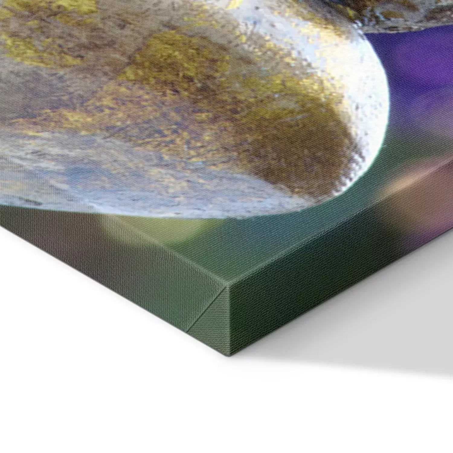De print wordt aangebracht op hoogwaardig canvas dat op een schildersweefgetouw (spieraam) wordt gespannen. Omdat de print de zijranden bedekt, hoeft het ontwerp niet met een extra kader te worden omlijst. Wij raden ook composities aan die uit meerdere foto's bestaan en zo een coherente compositie vormen.