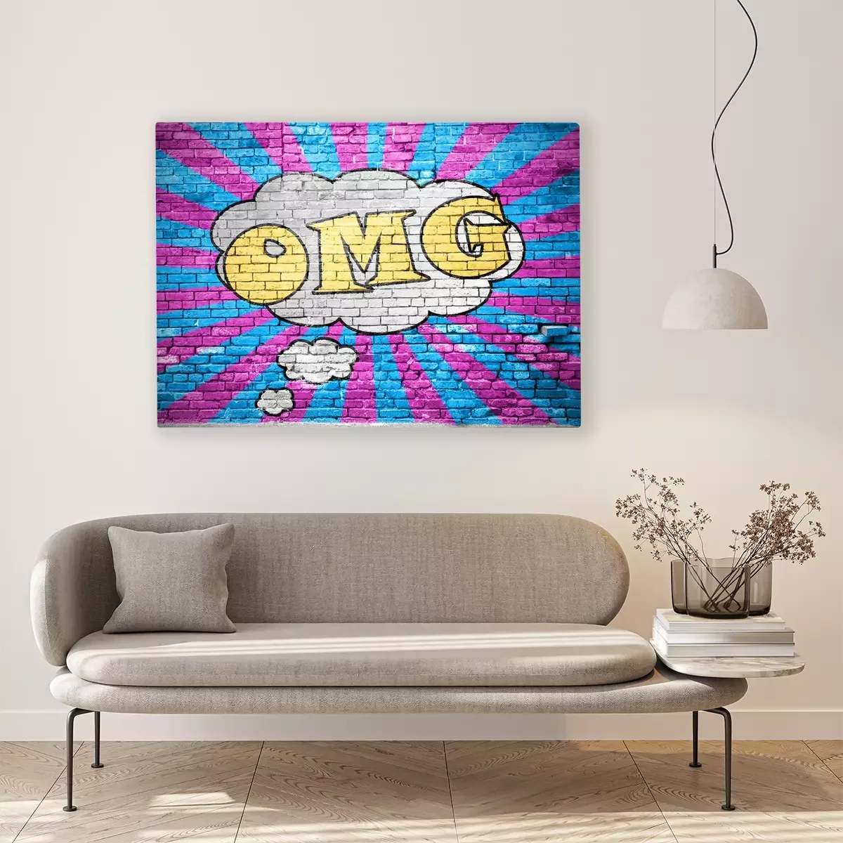 Canvas: OMG Comic bakstenen muur graffiti
